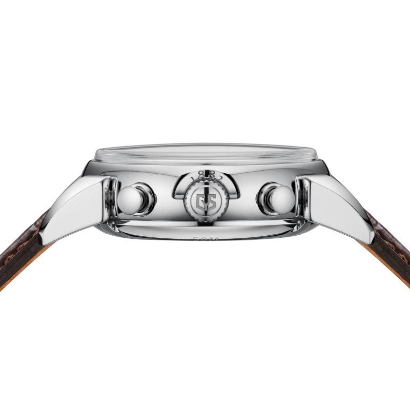 Le bracelet en cuir d'alligator de Louisiane de cette montre témoigne de son prestige et de son luxe. Avec une couleur marron, il offre un contraste exquis avec le boîtier en acier inoxydable. Le cuir est complété par des surpiqûres délicates, soulignant une attention particulière aux détails et une finition de haute qualité. Sa largeur d'entrecorne de 21 mm s'harmonise parfaitement avec le boîtier, garantissant une transition fluide entre le boîtier et le bracelet. La montre est équipée d'une boucle déployante qui procure une sécurité accrue et un confort d'ajustement, tout en ajoutant une touche de sophistication moderne au design global.