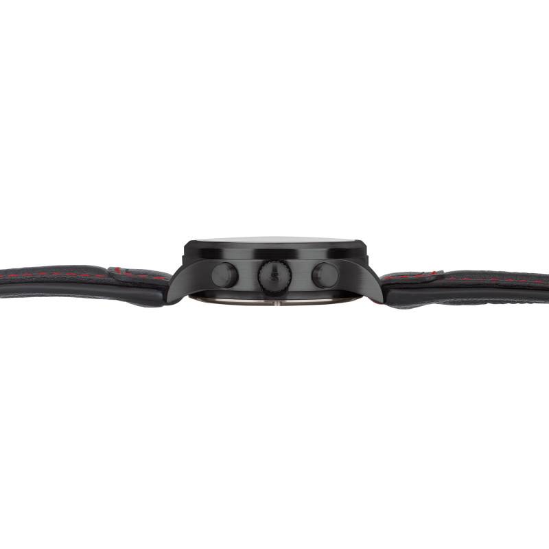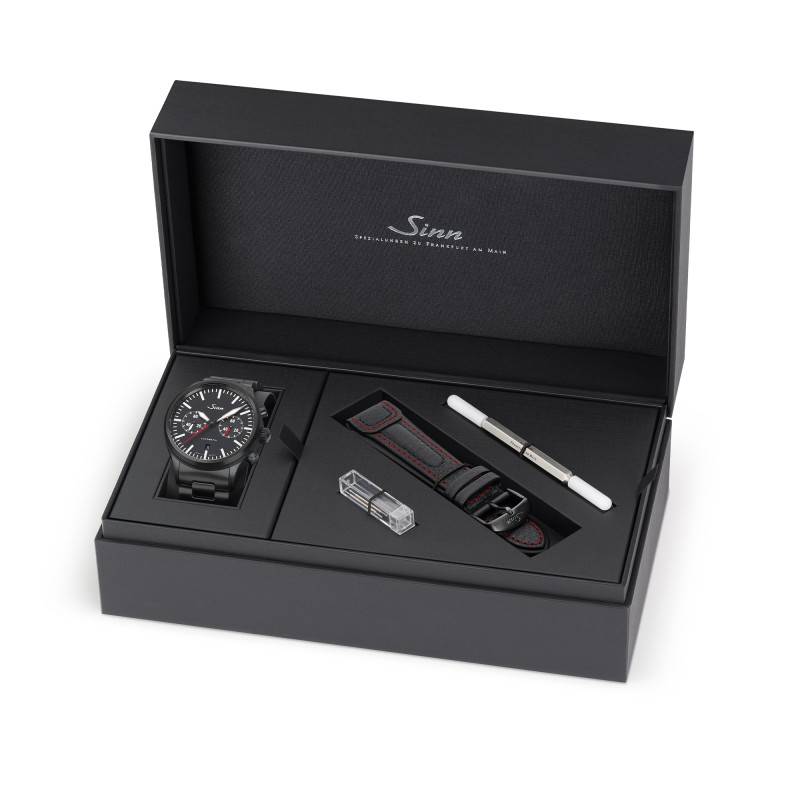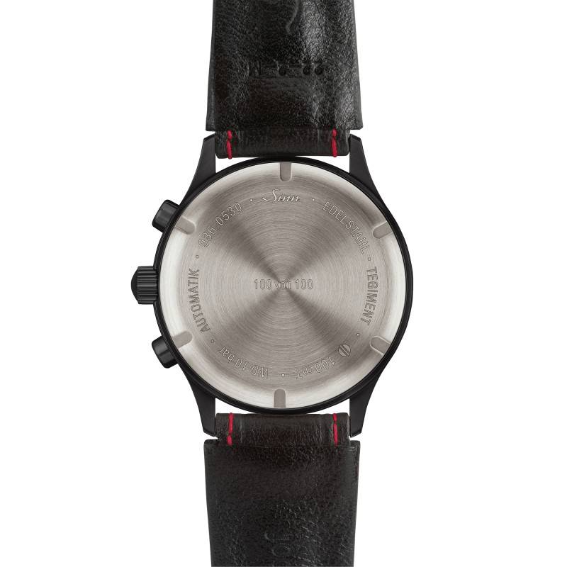 La Sinn Chronographe 936 S est équipée d'un bracelet en acier noir, qui allie esthétisme et confort d'un ajustement parfait. Sa largeur à l'entrecorne est de 22 mm, et il dispose d'un mécanisme de fermeture efficace grâce à une boucle déployante. De plus, un second bracelet est disponible, offert en cuir noir, avec une boucle ardillon, permettant d'ajuster le style du garde-temps selon l'occasion ou la situation, qu'il s'agisse d'un événement formel ou d'une sortie décontractée.