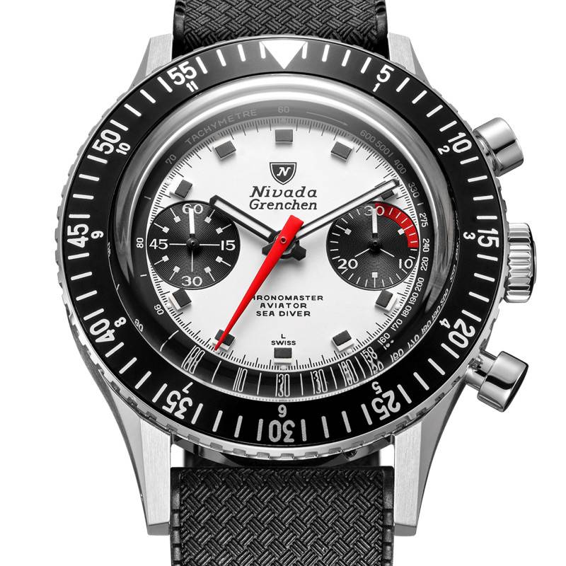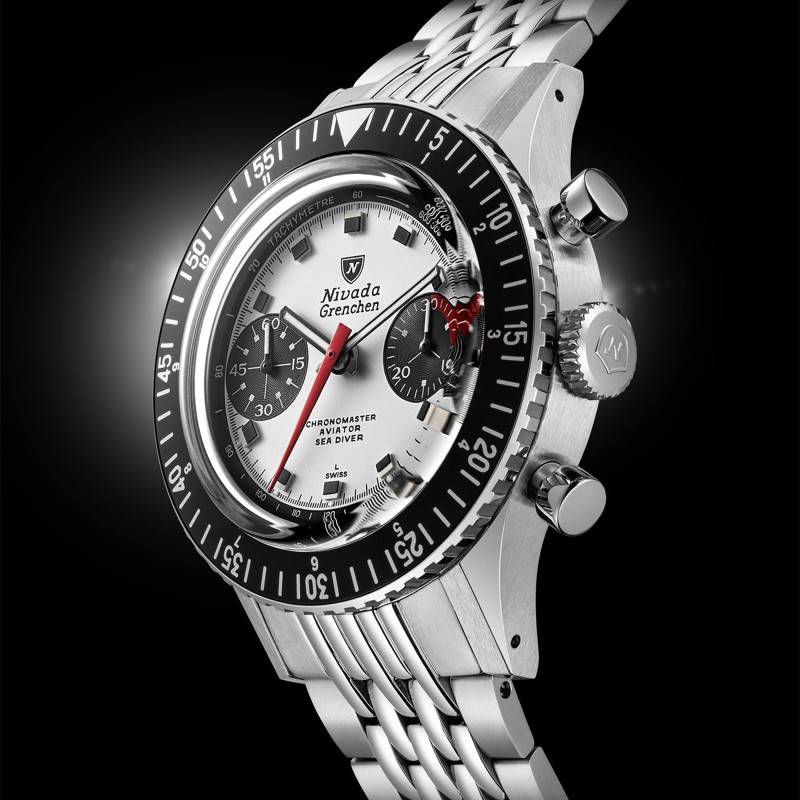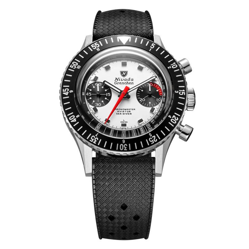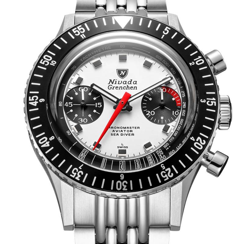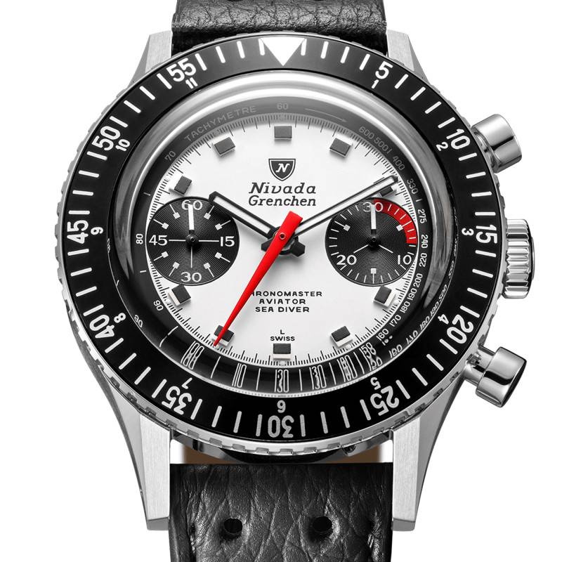 Avec la Nivada Grenchen Chronomaster Panda 41 mm, nous sommes transportés au cœur de l'élégance sportive des années 60, revisitée pour séduire les amateurs de montres contemporaines. La structure du boîtier, conçue en acier inoxydable 316L, assure une robustesse en toutes circonstances tout en conférant une allure sophistiquée. Sa forme ronde classique souligne le respect des traditions horlogères, tout en apportant une touche de modernité grâce à son imposant diamètre de 41 mm. Cette taille, associée à une épaisseur de 15,84 mm, garantit une présence affirmée au poignet. Le verre saphir bombé offre une résistance aux rayures et une protection optimale du cadran. Les finitions mates et polies apportent du contraste et une esthétique résolument raffinée. L'attention aux détails se manifeste également dans le cadre de son fond vissé, assurant une étanchéité de 10 ATM, rendant ce modèle parfait pour les activités quotidiennes et sportives.