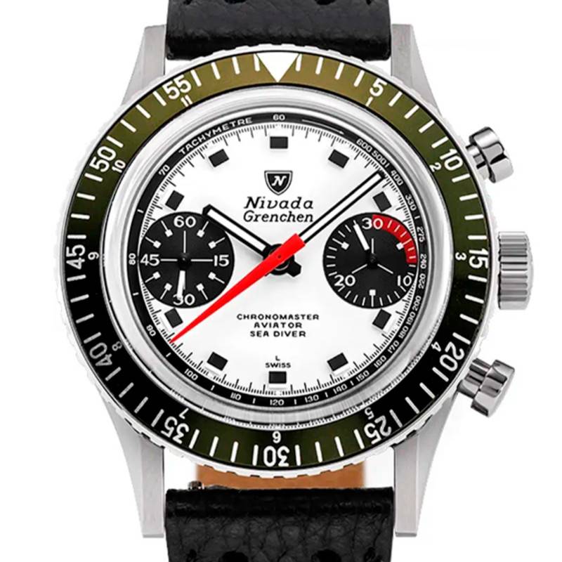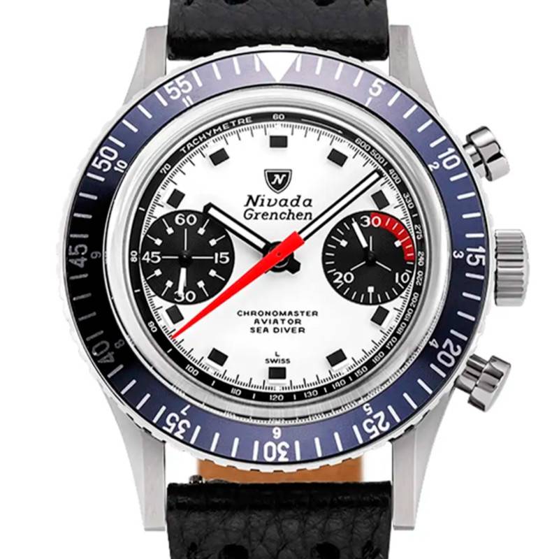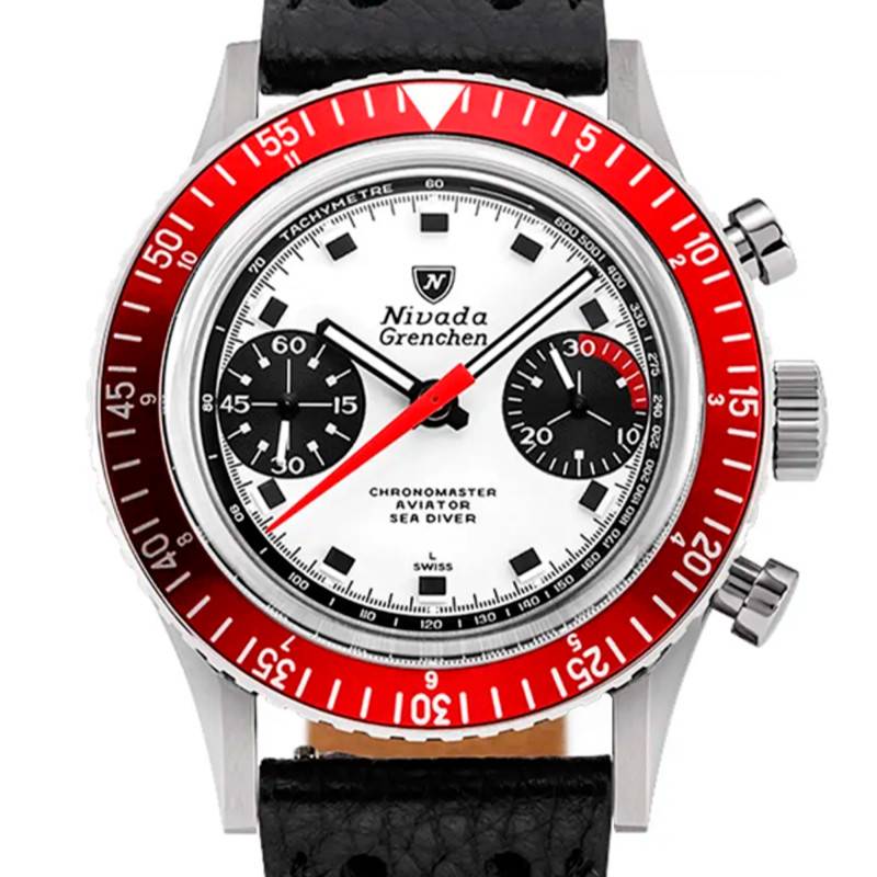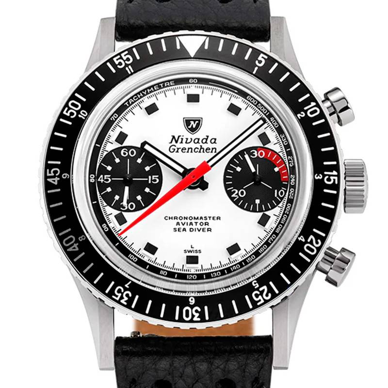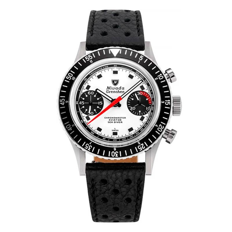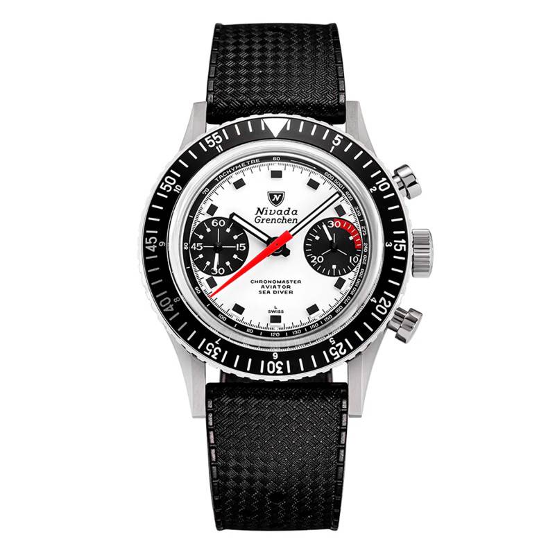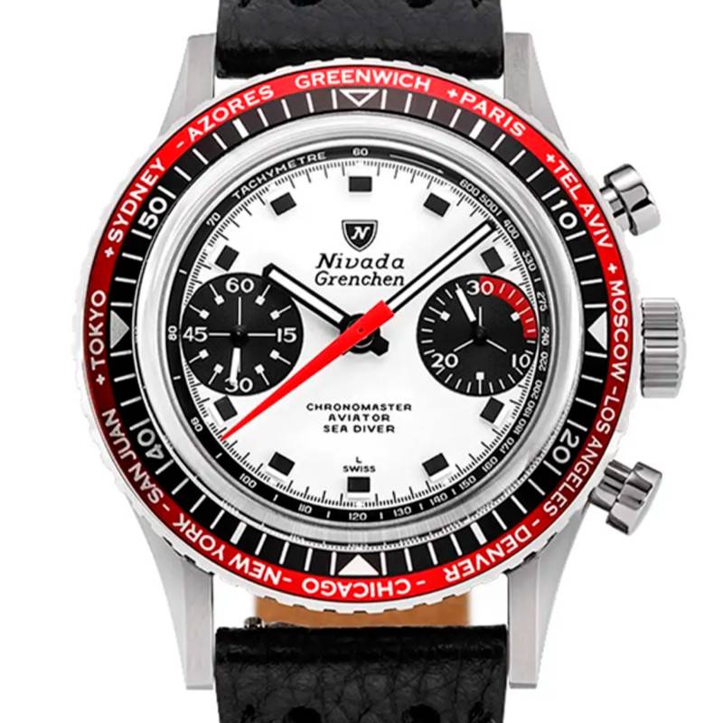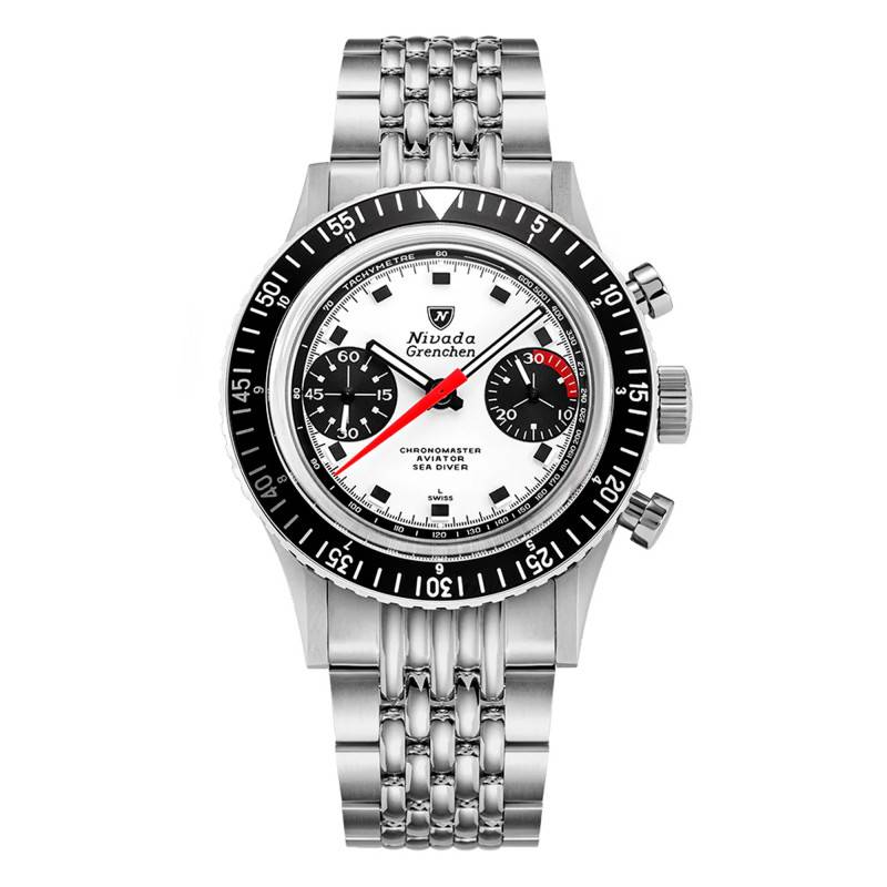 Nivada propose des montres de plongée et une variété d'autres modèles, incluant des chronographes, des montres de sport et des modèles plus classiques. Les collections de la marque sont souvent marquées par un design fonctionnel et une qualité de fabrication élevée. Nivada a connu un renouveau ces dernières années, avec une réintroduction de certains de ses modèles historiques en mettant en avant ses archives et ses designs rétro pour attirer les passionnés de modèles vintage et les collectionneurs modernes. De la fonction chronomètre standard au tachymètre et au chronomètre de navigation, la Chronomaster est destinée aux hommes polyvalents à la recherche d'une montre qui les accompagnera avec élégance. Cette belle montre Singer Paul Newman fait un clin d'œil au chanteur Newman, car elle comprend des typographies distinctes, héritées du design SINGER qui ont été minutieusement recréées pour cette réédition. Ce modèle est livré dans une boîte et comporte cinq lunettes interchangeables qui permettent de changer de style en fonction de son humeur sans compromettre la durabilité légendaire de la marque. Il se compose d'un boîtier de couleur argentée confectionné en acier inoxydable 316L brossé et poli. De forme ronde, il affiche 38 mm de diamètre et 13,75 mm d'épaisseur. Ces dimensions iront parfaitement aux poignets de la gent masculine. Les lunettes en aluminium de ce boîtier sont crantées et bidirectionnelles avec des marqueurs superluminova. Elles sont graduées d'une échelle des minutes ainsi que d'une complication GMT pour plus de fonctionnalités. Sachez qu'un verre saphir doublement bombé se charge de protéger le cadran contre les rayures et les chocs pouvant nuire à son esthétique. De plus, la couronne crantée et les deux boutons remontoirs positionnés à 2, 3 et 4 heures servent au réglage des aiguilles et des compteurs. Enfin, cette montre est proposée sur un fond de boite transparent en verre saphir et un fond de boite plein en acier via le menu déroulant. Notez que le fond vissé de ce garde-temps procure une étanchéité de 10 ATM.