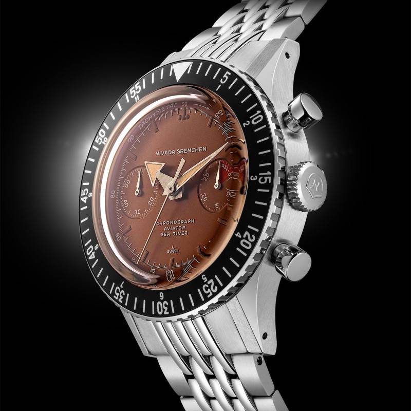 Le cadran de cette montre capte l’essence du style vintage avec ses tons bruns qui évoquent une chaleur tropicale et une profondeur patinée. Cette teinte marron résulte d’un jeu subtil de dégradés orange et brun, apportant autant de texture que de caractère. Sur le cadran, des chiffres arabes et des index luminescents trônent avec majesté, facilitant une lecture rapide et efficace en toutes circonstances. Les aiguilles Broad Arrow, également luminescentes, renforcent le caractère rétro tout en assurant une lisibilité exemplaire. Un chemin de fer des minutes bien dessiné encadre le tout, ajoutant une précision agréable dans l’affichage de l’heure, des minutes et des secondes.
