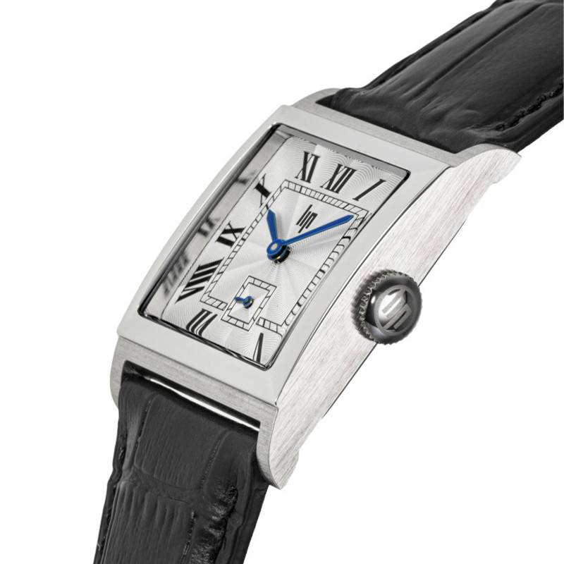 La Lip Churchill se distingue par un boîtier carré en acier avec un somptueux revêtement PVD gris lui conférant une allure à la fois moderne et élégante. Mesurant précisément 26 mm de côté et affichant un poids de 34 grammes, cette montre s'intègre parfaitement au poignet masculin avec subtilité. Sa finition polie et brillante accentue le caractère luxueux de l'ensemble. Fabriquée en France, cette montre est un gage de qualité et de savoir-faire horloger. Son boîtier est équipé d'un bouton remontoir unique, positionné stratégiquement pour allier esthétisme et fonctionnalité.