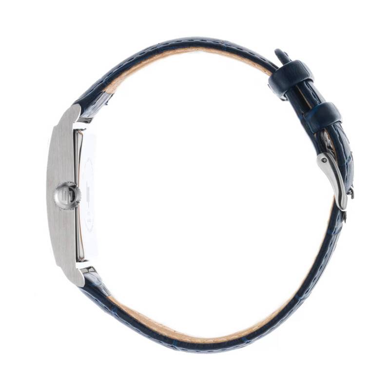 Ce modèle possède un élégant bracelet en cuir véritable bovin de couleur bleue. Il est orné d'une finition façon croco et de surpiqûres ton-sur-ton. Vous pourrez le refermer à l'aide d'une boucle ardillon de couleur argentée. Notez qu'il dispose d'une entre-corne de 20mm.