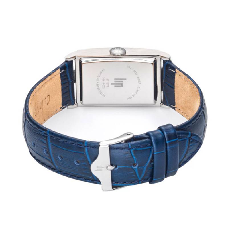 La T24 possède un cadran de forme rectangulaire et de couleur argentée. L'affichage analogique est assuré par deux aiguilles dauphines de couleur bleue qui vous indiqueront les heures et les minutes. De plus, un discret compteur des secondes est présent à six heures. La lecture des heures est facilitée par des index en chiffres arabes de couleur noire. Les index 3, 6, 9 et 12 sont notamment mis en évidence de par leur épaisseur. Ces index sont accompagnés d'un élégant chemin de fer des minutes disposé sur le pourtour du cadran. Enfin, la marque horlogère française LIP signe sa création sous l'index des douze heures. Elle ne manque pas de préciser la fabrication Bisontine à six heures.
