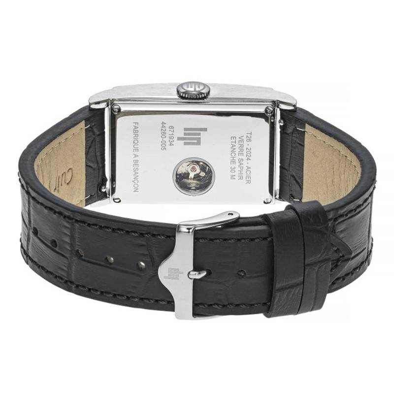 La marque Lip s'est fait connaître à l'échelle mondiale grâce à sa passion et ses merveilleux modèles conçus avec finesse pour enjoliver les poignets. Modernes et épurés, ils ne manqueront aucune occasion de vous mettre en avant et vous communiqueront le temps avec facilité en toute occasion. Toujours sur cette lancée, Lip est ravie de vous proposer la montre T26 671934 issue de la collection Churchill. Elle vous est proposée avec un boîtier en acier inoxydable 316L aux finitions brossées et polies mettant en valeur sa teinte grise. Celui-ci dispose d'une longueur de 46 mm, d'une largeur de 26 mm et d'un poids léger de 62 grammes. Convenant aux hommes, elle est recouverte par un verre saphir ayant pour rôle de protéger les éléments du cadran contre les rayures pouvant nuire à son esthétique. Une couronne crantée fixée à 3 heures vous permettra une manipulation fiable des diverses fonctions du modèle. Enfin, le fond de boîte maintenu par des vis dévoile une petite ouverture transparente laissant apparaître le mouvement et permet à la montre d'être étanche à 30m soit 3 ATM.
