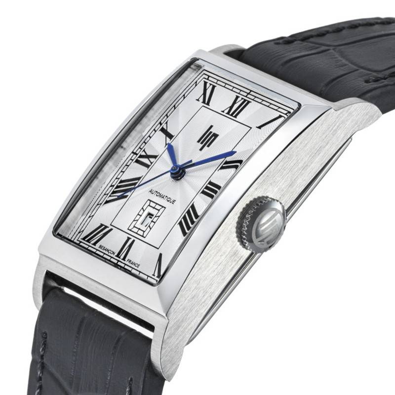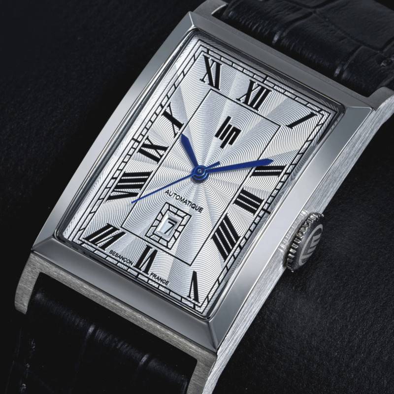 La marque a choisi de munir cette montre d'un cadran gris afin de permettre une vue imprenable et une lecture dégagée sur le temps. De finition soleillée, il se pare d'un chemin de fer des minutes accompagné par des chiffres arabes noirs qui vous indiqueront les heures. Ces différents marqueurs seront pointés par les trois aiguilles bleues qui vous communiqueront les heures, les minutes et les secondes. Pour plus de précision sur le temps, un guichet date de fond blanc prend place au-dessus de l'index de 6 heures. Enfin, Lip appose son nom sous 12h et appose la mention automatique à l'opposé.