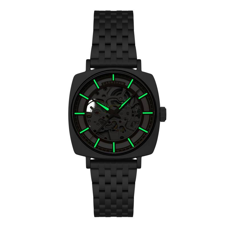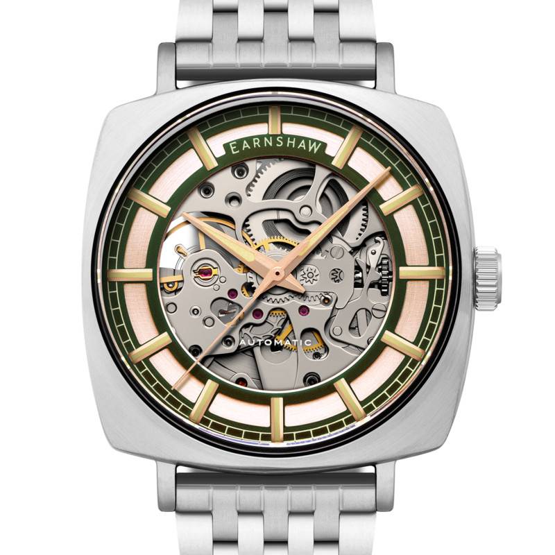 La montre Thomas Earnshaw que nous vous présentons incarne une certaine vision de la sophistication mécanique avec sa forme coussin distinctive. Son diamètre de 40 mm et son épaisseur de 14,50 mm en font une pièce d'horlogerie équilibrée et proportionnée, idéale pour toute occasion. Le boîtier est conçu en acier inoxydable, reconnu pour sa robustesse et sa résistance à la corrosion, apportant une sensation de durabilité couplée à une esthétique tradimoderne. La finition polie/satinée du boîtier ajoute une touche subtile de luxe tout en offrant une brillance contrôlée qui reflète la lumière de manière élégante. De plus, la montre dispose d'un seul bouton remontoir, preuve de son design épuré mais fonctionnel.
