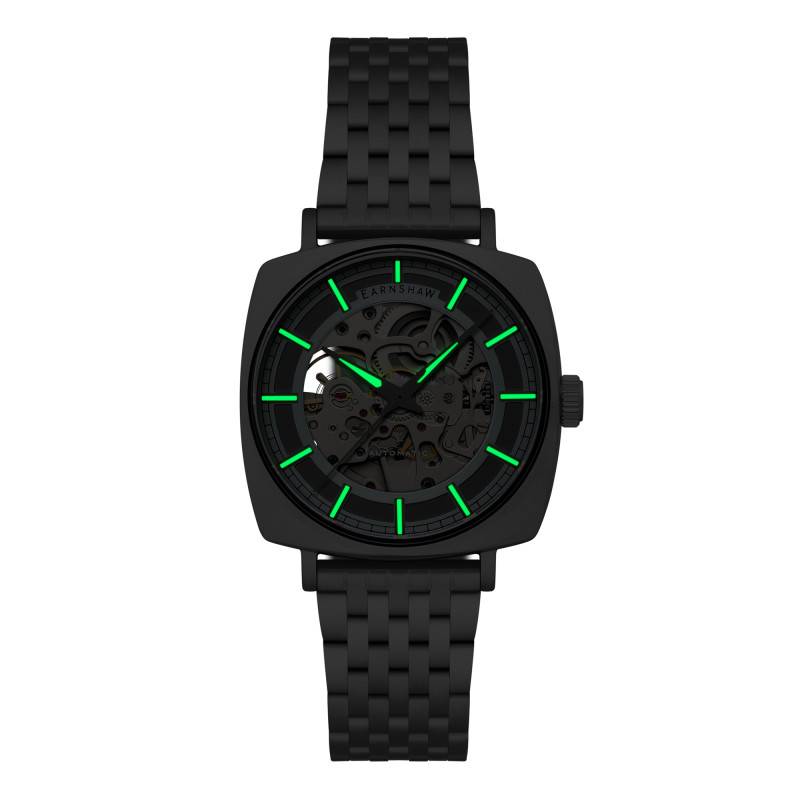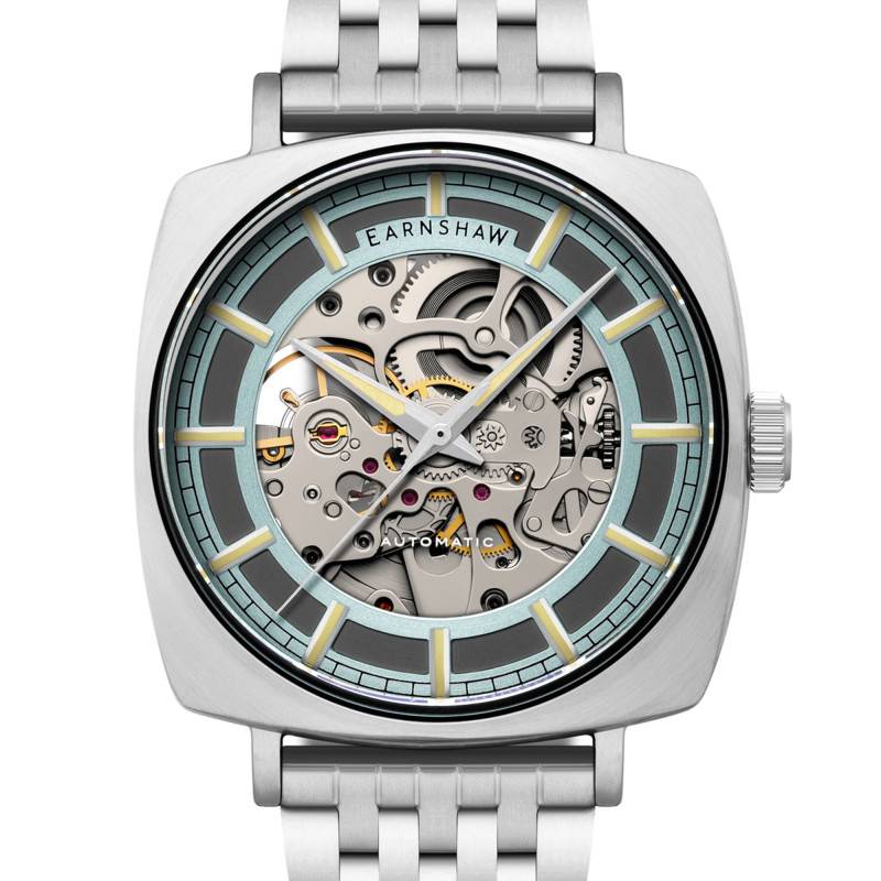 Thomas Earnshaw nous propose avec cette montre une expression élégante et robuste de l'horlogerie moderne. Le boîtier de forme coussin est fabriqué en acier inoxydable, sublimé par une finition à la fois polie et satinée, qui confèrent à la montre une distinction et une résistance remarquables. Avec un diamètre de 40 mm et une épaisseur maîtrisée de 14,5 mm, ce garde-temps est parfaitement équilibré pour un confort quotidien.