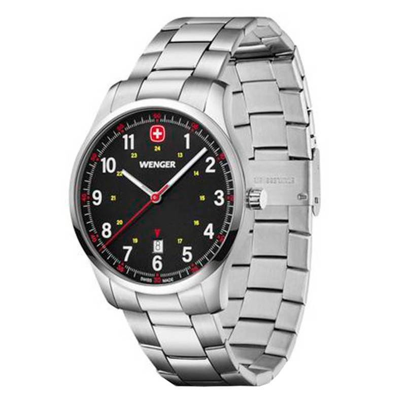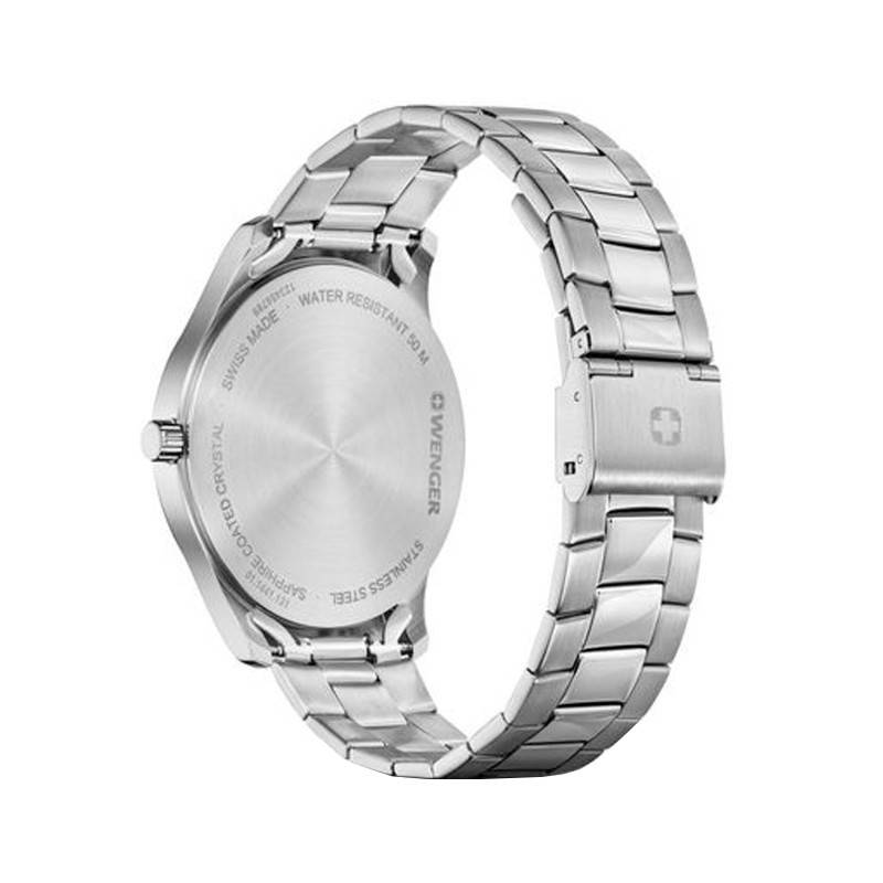 Wenger est une marque d'horlogerie qui propose des garde-temps qui se caractérisent par des designs charmant et intemporels. Ses collections de qualité suisse se distinguent par leur précision, leur fiabilité et leurs multiples fonctionnalités. Parmi celles-ci, nous vous proposons la montre City Sport 01.1441.131 qui est imprégnée de la haute tradition de l'horlogerie. Elle se compose d'un boîtier solide conçu en acier inoxydable 316L arborant une belle alternance de finitions polie . Il affiche une forme ronde ayant un diamètre de 42 mm et une épaisseur de 8 mm pour un poids de 109 grammes. Ce boîtier accueille un verre minéral de traitement saphir offrant une agréable vue du cadran alors que sur le flanc droit, il abrite une couronne crantée. Celle-ci est placée plus exactement à 3 heures et assure le réglage des heures, des minutes et de la date par une simple manipulation. Pour finir, le fond emboîté dispose d'une étanchéité de 5 ATM.