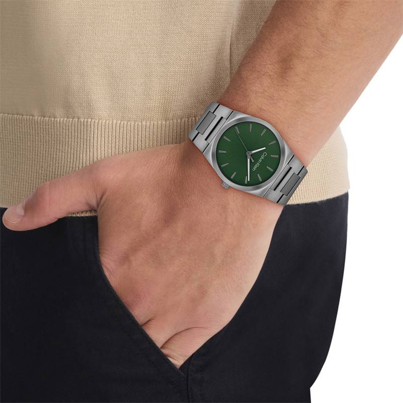 La montre Calvin Klein se distingue par son allure résolument moderne et élégante. Avec un boîtier rond de 40 mm de diamètre et un poids de 119 g, elle se positionne comme un accessoire à la fois léger et imposant. Le boîtier en acier inoxydable lui confère une robustesse à toute épreuve, tandis que sa finition mate (brossée et satinée) lui apporte une touche de sophistication. L'ensemble est sublimé par un verre plat, qui non seulement protège le cadran mais qui offre aussi une clarté inégalée pour l'affichage du temps.