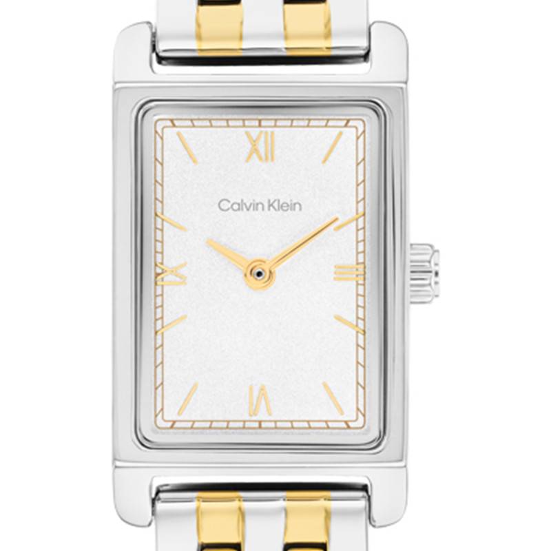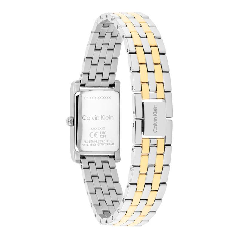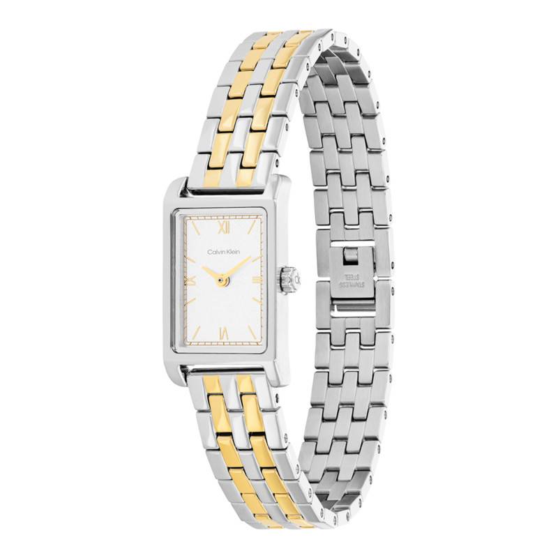 La montre Calvin Klein pour femme se distingue par son design épuré et son allure résolument contemporaine. Ce modèle, d'un style sophistiqué, intègre un boîtier rectangulaire mesurant 16 mm de diamètre et 6 mm d'épaisseur, offrant une présence discrète et raffinée au poignet. La matière principale, l'acier inoxydable, assure non seulement une résistance exceptionnelle mais également un aspect moderne et élégant grâce à sa finition polie. La forme rectangulaire de ce garde-temps met en valeur son caractère unique, tandis que le fond emboîté contribue à sa résistance à l'eau et à sa durabilité.