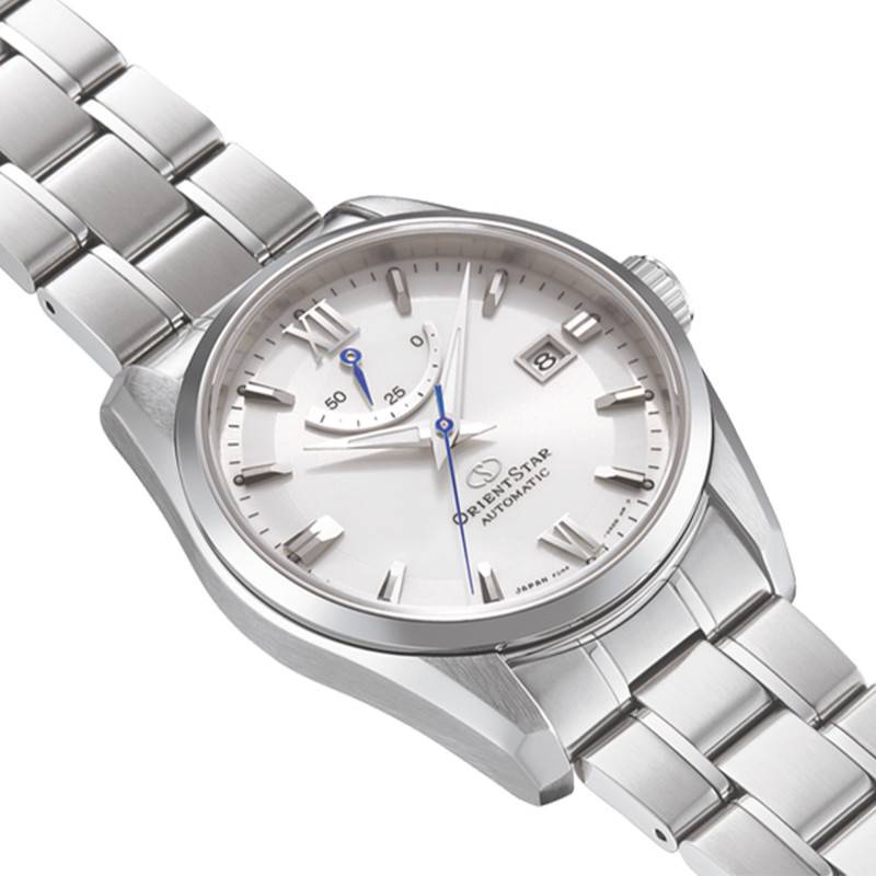 L'excellence de ce modèle est perceptible à travers ce cadran rond, d'une beauté à en couper le souffle. De couleur blanche, il est orné d'une finition soleillée qui vous donnera l'impression que ce modèle se réinvente quotidiennement, capturant les faisceaux de lumière. Le pourtour du cadran est sublimé par un double cercle guilloché sur lequel des index fuselés et argentés sont appliqués. Ils prennent l'apparence de chiffres romains pour six et douze heures tandis que les autres index sont de forme bâton. De plus, cette partie du cadran est complétée par un chemin de fer des minutes noir ainsi que par de légers ronds blancs luminescents. Afin de vous fournir un confort de lecture même dans les milieux sombres, l'aiguille des heures et celle des minutes sont également luminescentes. De forme dauphine et de couleur silver, elles sont plus discrètes que la trotteuse bleu-électrique qui ressort joliment. Assortie à ce détail, l'aiguille présente dans le compteur de réserve de marche arbore également cette teinte. Ce compteur situé à midi, vous renseignera sur la réserve d'énergie de votre montre. Notez également, la présence d'un guichet date à trois heures qui est encadré par un rectangle silver. Finalement, c'est à six heures, que la marque signe de son nom ainsi que de son logo ce cadran.