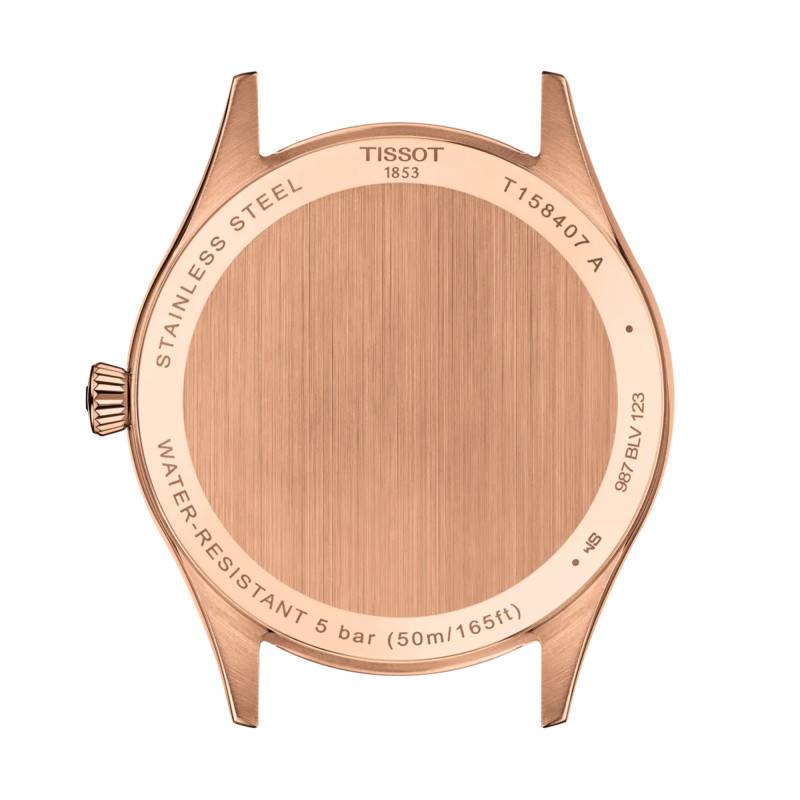La montre Tissot est équipée d'une étanchéité de 5 ATM, ce qui équivaut à une résistance à l'eau jusqu'à la pression atmosphérique à 50 mètres de profondeur. Cela signifie qu'elle est suffisamment résistante pour le quotidien, comme le lavage des mains ou de légères projections d'eau, tout en maintenant son élégance intacte. Cette résistance est supportée par un fond de boîte emboité, assurant un ajustement parfait et une protection durable contre les éléments extérieurs.