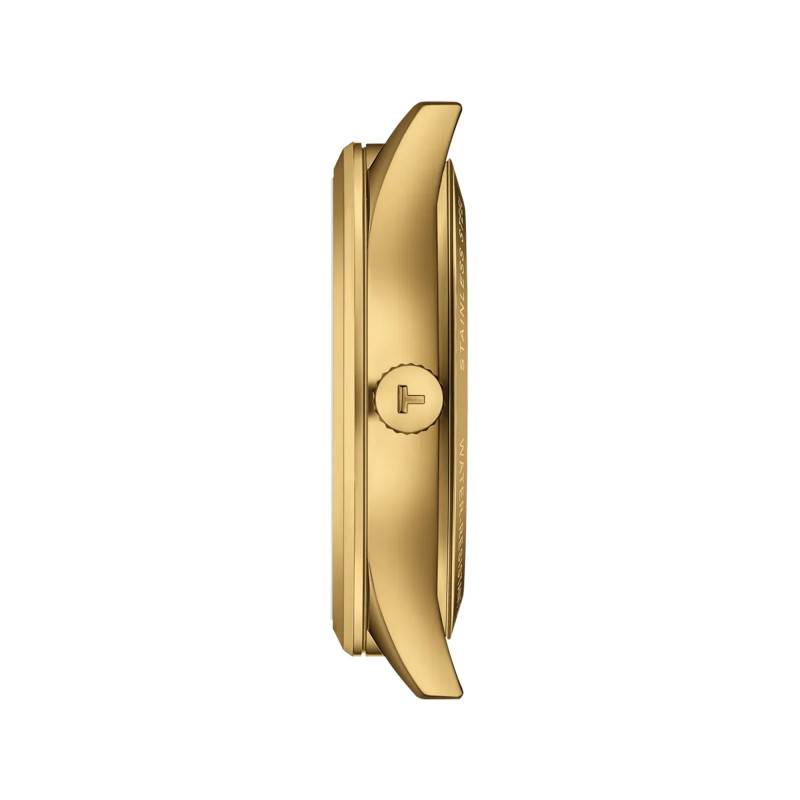 La montre Classic Dream de Tissot incarne parfaitement l'élégance discrète et la sophistication suisse en matière d'horlogerie. Son boîtier en acier inoxydable 316L, recouvert d'un revêtement PVD jaune, brille de mille feux grâce à sa finition polie et brillante. Avec un diamètre de 40 mm et une épaisseur de 10,20 mm, son allure subtile et raffinée en fait le compagnon idéal pour une tenue formelle ou décontractée. Pesant 58 grammes, elle repose confortablement sur le poignet sans être encombrante. La montre possède un fond de boîte emboité, et un seul remontoir qui ajoute à son style épuré et minimaliste.