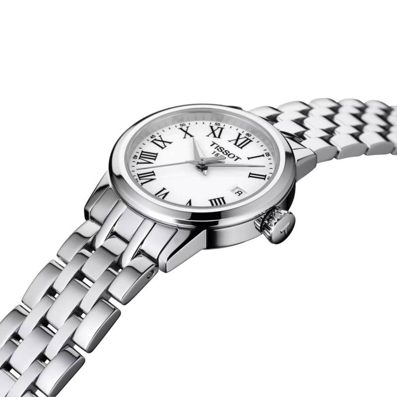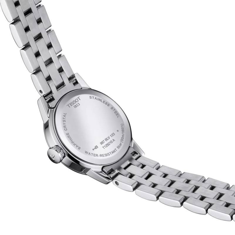 La maison horlogère suisse Tissot, nous dévoile sa montre T129.210.11.013.00 de sa collection Classic Dream Lady. Elle arbore un boîtier rond en acier inoxydable 316L. De 28 millimètres de diamètre et de 7.1 millimètres d'épaisseur il est emprunt d'une grande féminité du fait de ses finitions. De plus, le verre qui recouvre cette montre est un verre saphir inrayable. Afin de régler l'heure comme bon vous semble, une couronne vissée prend place à 3 heures. Pour finir, un fond de boîtier emboîté enclos précieusement le mouvement afin de lui offrir une étanchéité de 5 ATM, soit 50 mètres de profondeur.