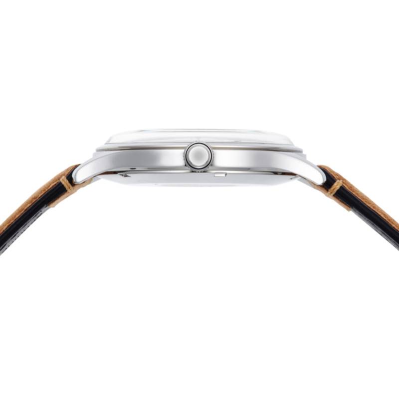 Depuis maintenant plus de 50 ans, la maison Orient nous propose des modèles avec le même standard de qualité et de précision sans faille. Ainsi, la nouvelle collection classique se compose de pièces d'une fiabilité et d'une beauté qui perdurent face à l'épreuve du temps. Ce modèle automatique AC08003A est considéré comme l'un des best-sellers de la maison, notamment grâce à son boîtier en acier inoxydable de 42 millimètres de diamètre pour 12 millimètres d'épaisseur. Ce boitier en acier poli compose avec une délicate couronne logée à 3 heures. L'un des atouts-charme de cette montre est son verre minéral bombé, pour une note vintage. En ce qui concerne son fond de boîte, celui-ci est simplement vissé mais gravé à l'effigie de la marque japonaise.