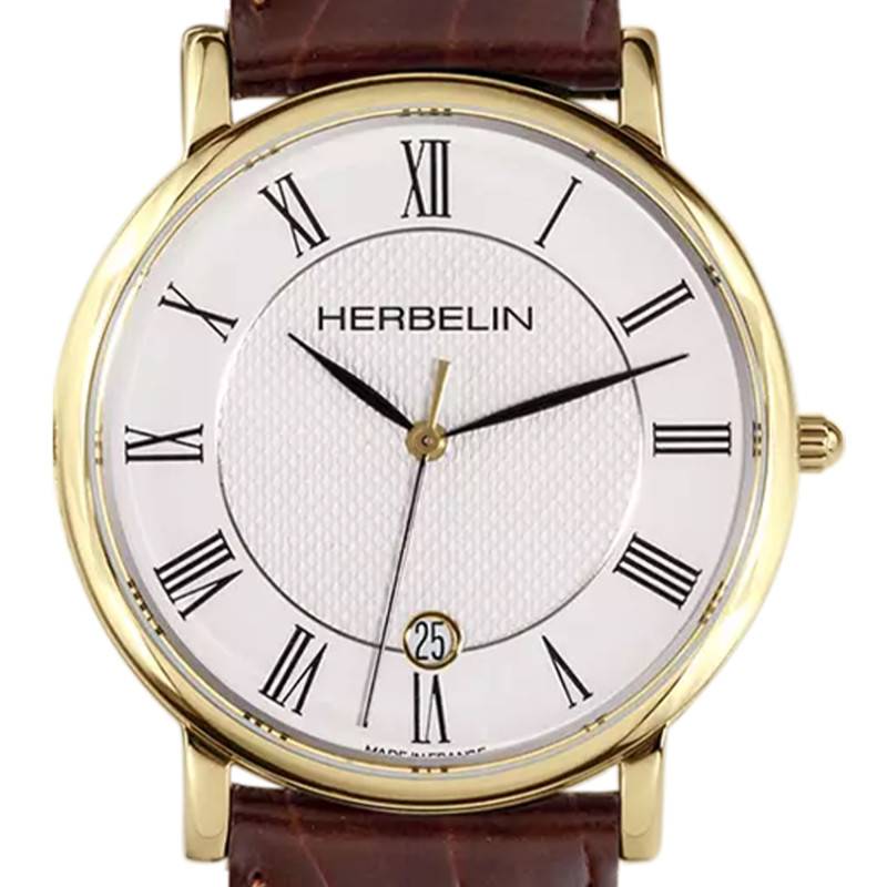 La marque Michel Herbelin fabrique des montres depuis plus de 70 ans. Elle propose des garde-temps uniques qui sont conçus, assemblés à la main et contrôlés dans les ateliers franc-comtois de la marque. Attentive aux détails, la marque vous propose de découvrir la collection Classique dont fait partie cette montre Sonates. Elle arbore un boîtier rond en acier 316 L plaqué or jaune PVD d'une beauté incroyable. Son diamètre de 38 mm, son épaisseur de 6.55 mm et son poids de 42 grammes fait de ce garde-temps le parfait compagnon des poignets masculins. Ce dernier est surplombé par un verre saphir qui assure résistance et durabilité au cadran et comprend à sa droite une couronne qui vous permettra de corriger la date et de procéder à la mise à l'heure. Enfin, le fond emboîté en acier 316L est signé avec le nom de la marque assure une étanchéité de 3 ATM.