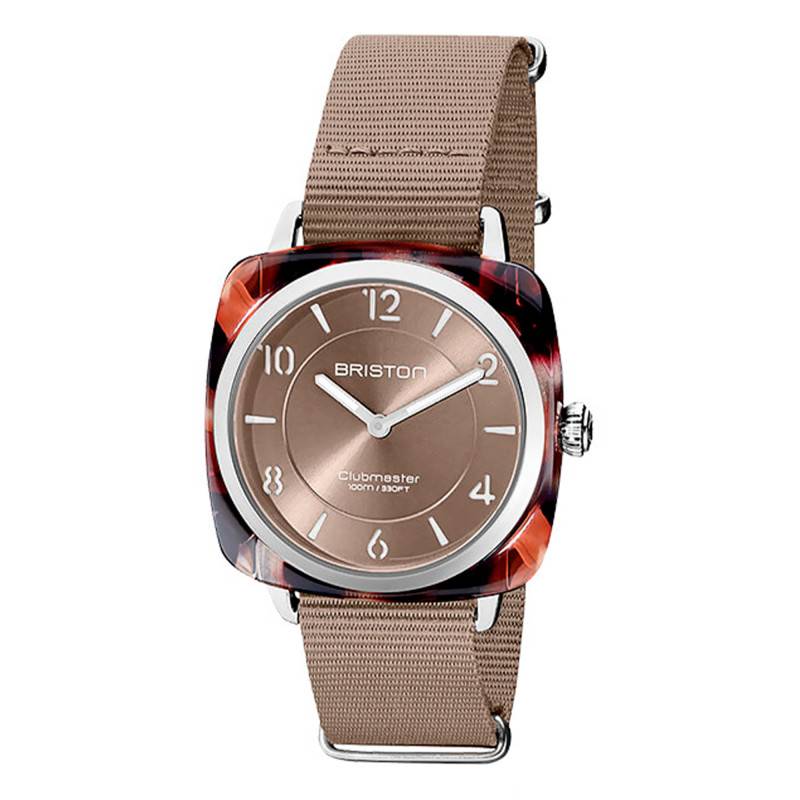 Afin d'accompagner ce sublime boitier en acétate, la marque Briston a choisi un bracelet Nato propre à sa fabrication. Il s'adaptera aux courbes de votre poignet féminin dans un confort absolu grâce à sa boucle ardillon argentée. En nylon taupe, il s'accorde avec le reste de la montre et résiste à l'eau. Interchangeable, vous pouvez décider de changer de style sans pour autant changer de montre. Assurez-vous simplement qu'il dispose de la même largeur d'entrecorne, soit 18mm.