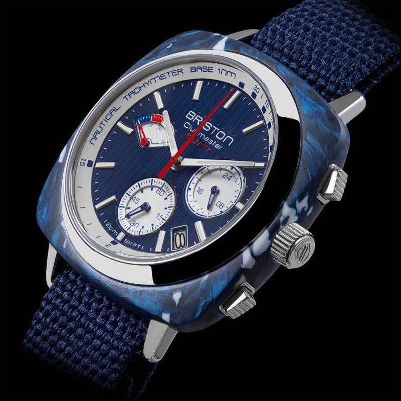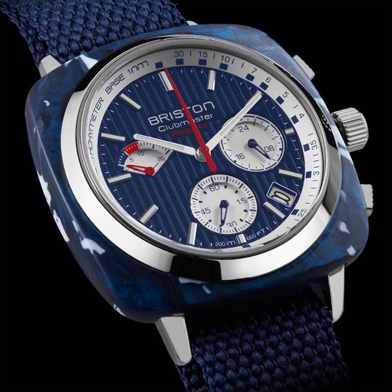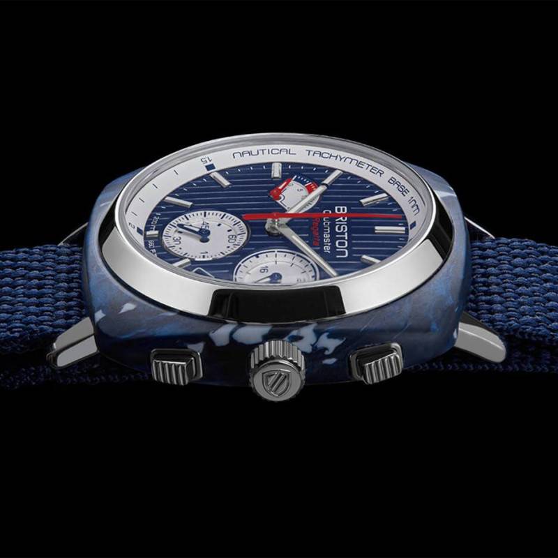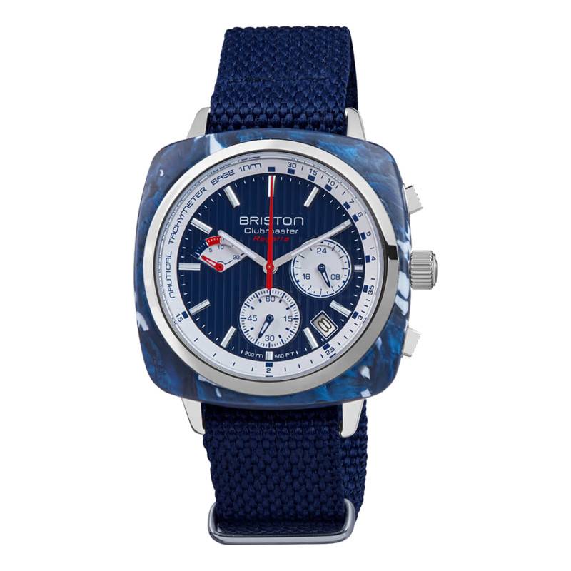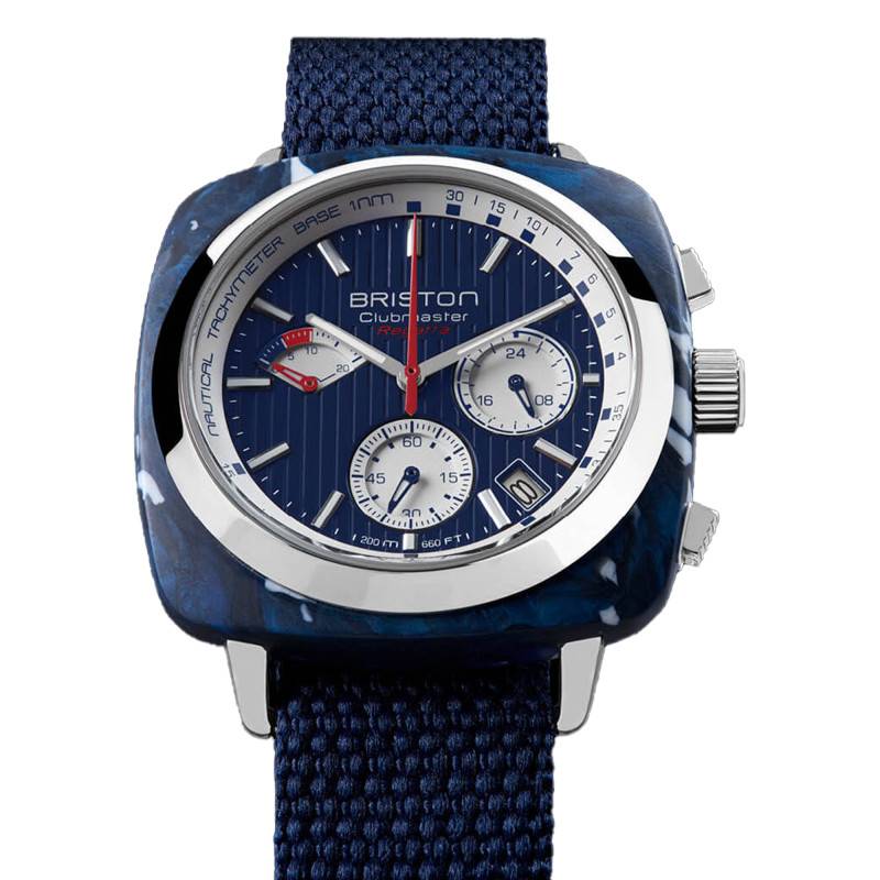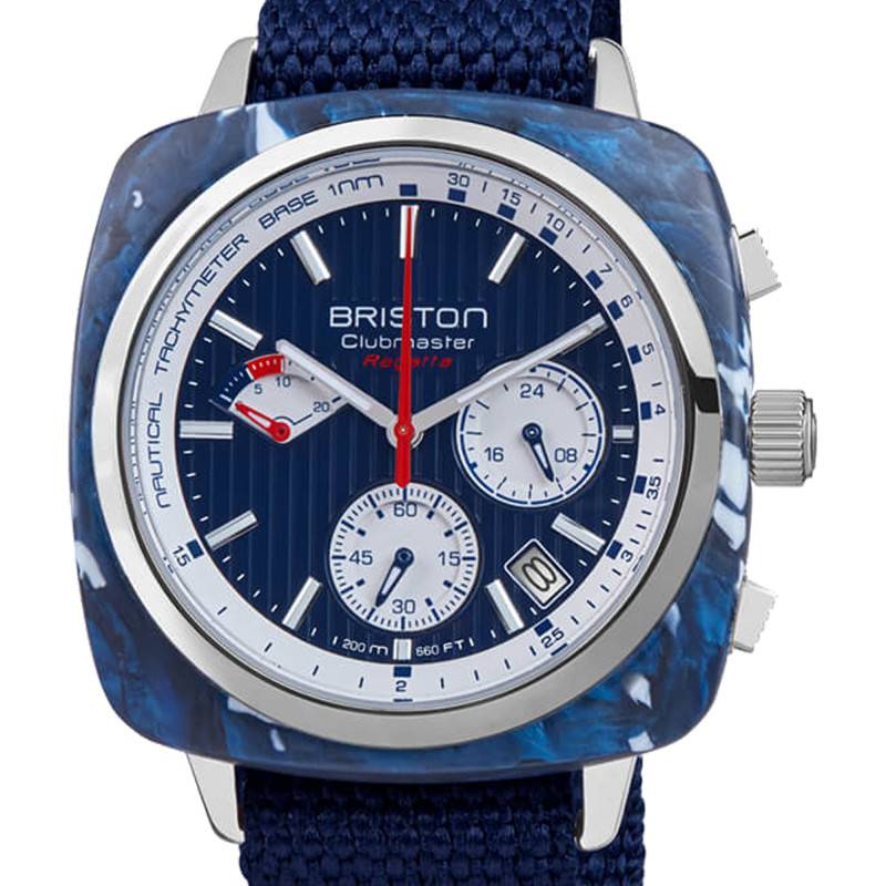 Jouant sur les formes épurées, les couleurs vibrantes et les designs intemporels avec toujours cette inspiration preppy britannique, la jeune marque française Briston a pu faire parler d'elle sur le marché horloger par des créations de haute qualité, urbaines et précises dans l'air du temps. Élaborés avec un soin méticuleux tant sur le niveau esthétique que technique, ses garde-temps ont pu conquérir le cœur de nombreux adeptes du style sport-chic et offrent à leurs propriétaires la meilleure expérience horlogère au poignet. Entre innovation continues, écoresponsabilité et engagement envers l'excellence, la marque s'associe aujourd'hui avec “Plus belles baies du monde”, une ONG engagée auprès des Nations Unies pour la protection des côtes et des océans à travers le monde, et enrichit sa collection Clubmaster avec une nouvelle montre en édition limitée à 100 pièces. Éveillant les consciences et mettant l'accent sur la préservation des baies et des littoraux, ce fascinant garde-temps Clubmaster Regatta Chrono Date 241542.SP.NB.15 conjugue une esthétique sport-chic, des fonctions performantes et une fabrication responsable, faisant le choix idéal de toute personne en quête d'une montre innovante, originale et de haute qualité qui nous incite à repenser nos modes de consommation et leur impact sur notre environnement. Destiné à un usage quotidien, il viendra parer votre poignet avec élégance et raffinement en devenant assurément votre indispensable préféré qui vous assistera avec fiabilité lors de toutes vos aventures, tant sur terre qu'en mer. Facile à assortir et agréable à porter, il se pare d'un boîtier de forme carré-cambré de 42 mm de largeur, 42 mm de longueur et 12,80 mm d'épaisseur. Ce dernier renforce le caractère écoresponsable de la montre et lui confère un aspect plus profond grâce à sa conception en plastique recyclé élaborée en Belgique par un des leaders du secteur du recyclage, BEL Albatros. Convenant idéalement aux poignets masculins, il se pare d'une finition mate qui met en avant sa belle couleur bleu marine en lui accordant une touche intemporelle. Ses autres composants sont réalisés en acier inoxydable 316L avec un fini poli pour un rendu dynamique. D'une épaisseur de 2,80 mm, un verre minéral K1 ultrarésistant de forme bombée vient couvrir le cadran, assurant une grande résistance aux chocs. Par ailleurs, une couronne crantée est vissée à 3h et est entourée par deux boutons poussoirs, servant à la manipulation des aiguilles, des compteurs et du guichet. Au verso, le fond de boîte est vissé, permettant une étanchéité de 20 ATM. Sachez qu'en achetant cette sublime édition limitée, 30€ seront reversés aux Plus belles baies du monde.