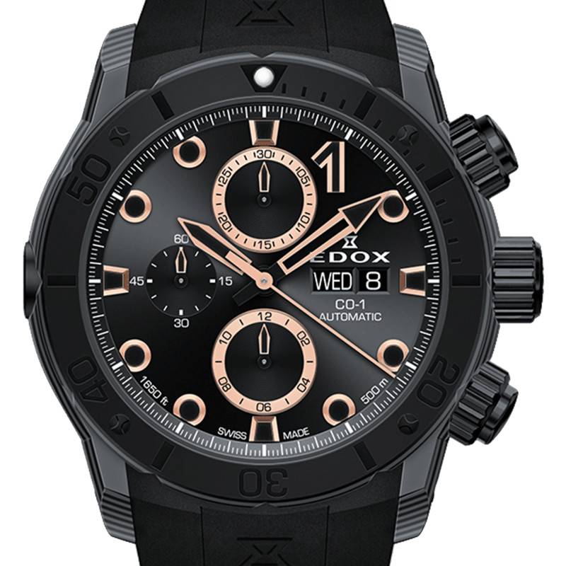 La montre CO-1 Carbon Chronograph Automatic représente une fusion parfaite entre design contemporain et performance technique supérieure. Conçue par la renommée maison horlogère Edox, cette montre pour homme incarne l'élégance dynamique grâce à son boîtier rond en carbone robuste, affichant un diamètre imposant de 45,00 mm et une épaisseur de 16,50 mm. Sa finition en PVD gris confère une allure moderne et sophistiquée qui se prête autant aux aventures aquatiques qu'aux occasions formelles. La transparence de son fond vissé ajoute une touche technologique et permet d'observer la précision du mouvement interne. L'ajout d'une couronne vissée et d'une valve à hélium assure une étanchéité incomparable, pouvant résister jusqu'à 50 ATM, soit une immersion significative qui convient aux amateurs de sports nautiques. L'esthétique est renforcée par une lunette dotée de marqueurs luminescents et d'un chemin de fer des minutes, ce qui accentue encore davantage son allure dynamique.