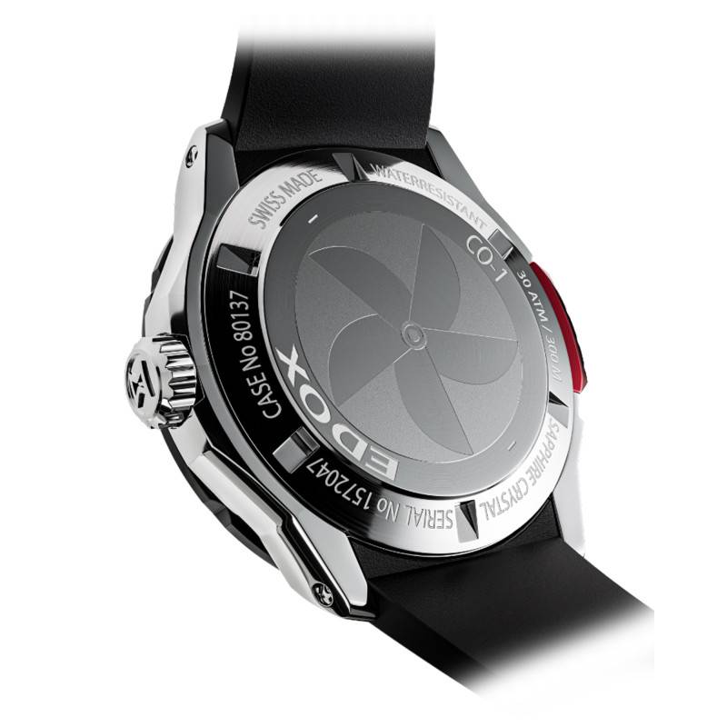 Au cœur de la montre CO-1 Date Automatic se trouve un mouvement automatique suisse, souligné par la technologie de mouvement Edox 80. Ce calibre est basé sur le célèbre Sellita SW200, garantissant à la fois une précision remarquable et une robustesse éprouvée. Le mouvement fonctionne à une fréquence de 28.800 A/h (4 Hz), une caractéristique qui assure une fluidité de mouvement de l'aiguille des secondes et une grande précision chronométrique. La montre est dotée d'une réserve de marche de 38 heures, permettant à l'utilisateur de la retirer sans craindre de devoir la remonter trop fréquemment. Ce garde-temps est également équipé d'une valve à hélium, un dispositif technique essentiel pour ajuster la pression interne lors des plongées en grande profondeur, assurant ainsi la préservation du mécanisme interne contre les effets indésirables de la pression. Le choix d'un tel mouvement démontre l'engagement d'Edox à fournir une qualité horlogère inégalée, combinant héritage suisse et innovation moderne.