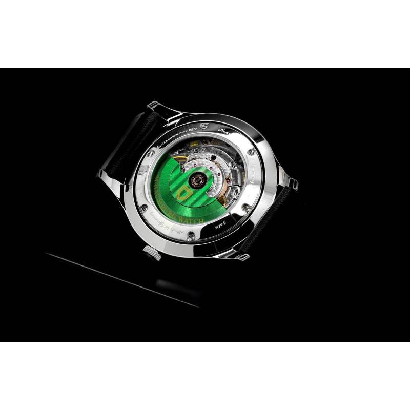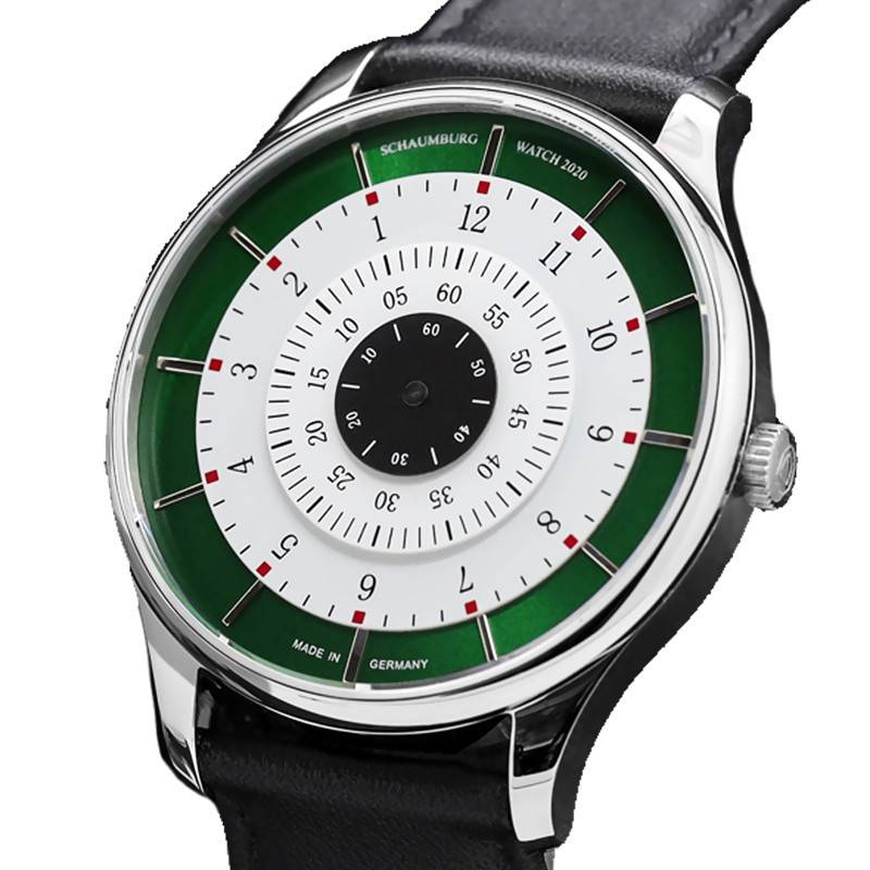 La marque horlogère allemande Schaumburg a sélectionné pour sa montre Cocktail Green Island un mouvement automatique d'origine Suisse et de numéro SW-21A. Il a été adapté à la collection via des modifications réalisées ultérieurement au sein de la propre manufacture de la marque Schaumburg. Vous disposez d'une réserve de marche de 38 heures et le mécanisme contient un rotor de couleur verte décoré de dorures. Ce mouvement affiche avec précision les heures, les minutes et les secondes des 12 fuseaux horaires disponibles.