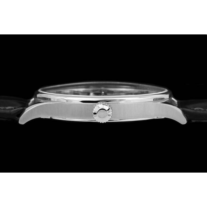 Dans cette poésie moderne d'inspiration vintage, la marque Schaumburg a décidé de munir sa montre Cocktail Green Island d'un bracelet minimaliste en cuir de couleur noire. Son grain est très fin et il est discrètement surpiqué ton sur ton sur toute sa longueur. Les surpiqûres améliorent sa tenue et son bon maintien au fil du temps. Evitez au mieux le contact avec l'eau qui pourrait accélérer l'usure du cuir.