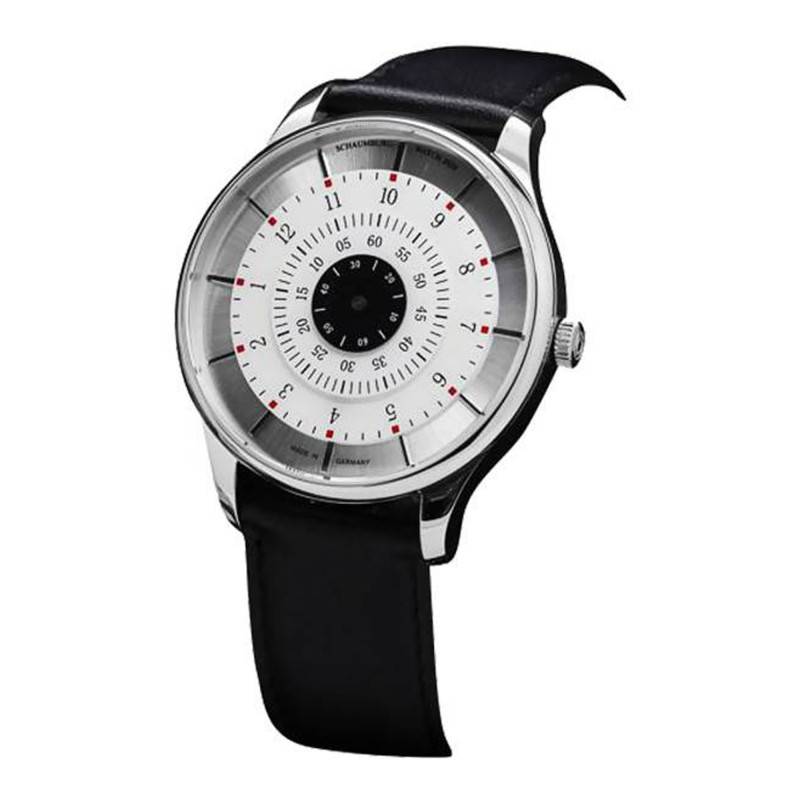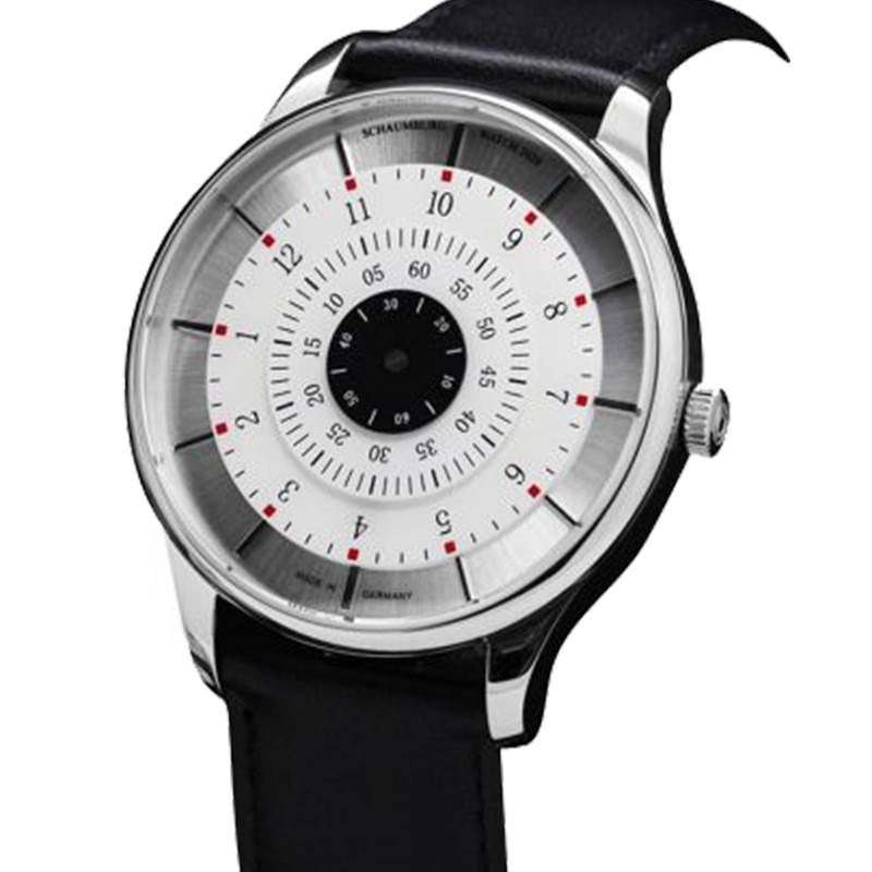 Construite en Allemagne à la lisière du fleuve Weser, la manufacture horlogère dénommée Schaumburg Watches ne cesse de plaire. Les mouvements qu'elle créé sont mécaniques, précis et travaillés à la main. Sa qualité se combine à un design innovant avec un style bien souvent vintage. Cette maison est aussi surprenante que sa collection Cocktail, proposant des garde-temps mixtes dépourvus d'aiguilles, avec pour seuls indicateurs des disques. Ce pari ambitieux a été largement relevé et nous vous présentons ici le modèle Cocktail White Velvet. Ce dernier possède un boîtier de 36mm de diamètre fait d'acier brossé et poli. Un bouton remontoir fin vient se loger à trois heures. Pour protéger le cadran, un verre saphir incurvé a été choisi. Au dos, le fond de boîte maintenu par des vis a une glace minérale transparente. Le niveau d'étanchéité de cette montre est de 50 mètres.