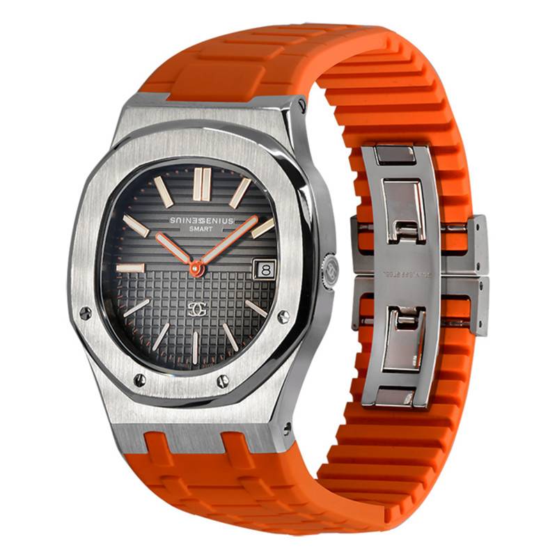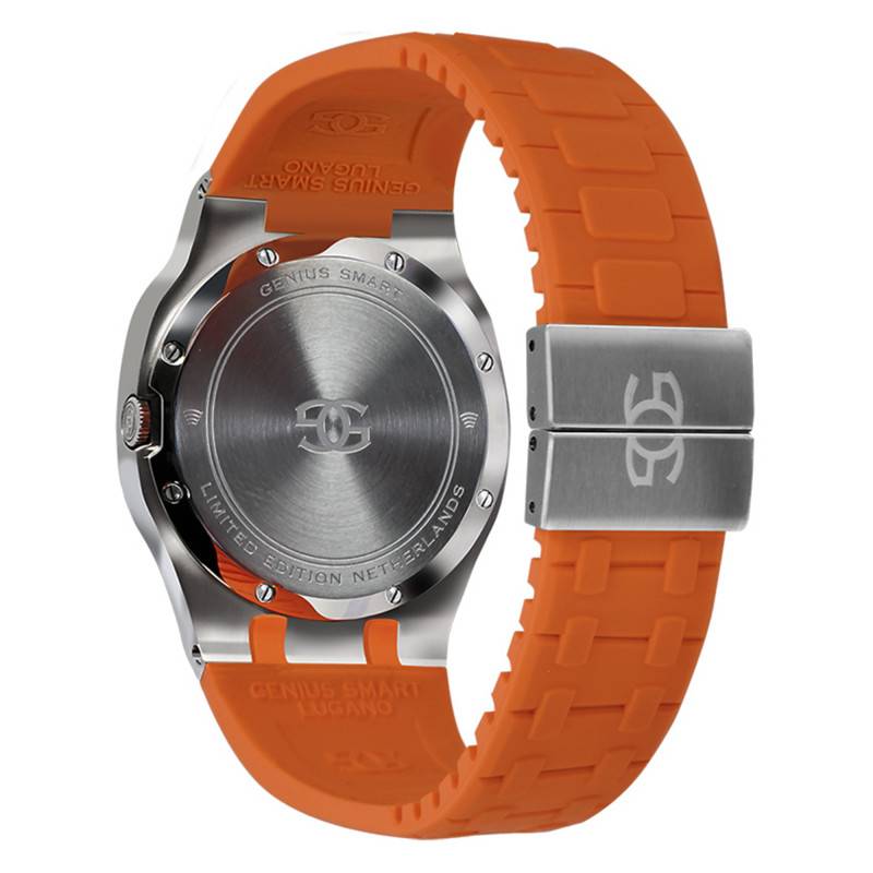 Genius est une marque qui a fait son entrée dans le milieu horloger en 2020 en proposant l'impensable. Elle fabrique des garde-temps de haute qualité à partir de matériaux durables dans le but de garantir leur durabilité. Le concept de cette entreprise est de créer une montre en prenant la moitié de l'une et la moitié de l'autre, créant ainsi une nouvelle fusion d'un design unique. La Smart Collection comprend cette splendide montre Netherlands spécialement conçue en édition limitée pour la gent masculine. Elle présente un boîtier de forme tonneau fabriqué en acier inoxydable 316L. Ses dimensions sont de 49,80 mm de longueur de corne à corne, de 39 mm de diamètre et de 10,60 mm d'épaisseur. Ce dernier se pare d'une couleur argentée, de finitions polies et brossées et arbore une lunette octogonale maintenue vers le bas par des vis. Sur ce boîtier, est déposé un verre saphir plat qui offre une protection ultime au cadran contre les rayures pouvant nuire à son esthétique. La surface de son cadran est recouverte par un traitement antireflet qui offre une bonne lisibilité des indicateurs. Par ailleurs, la couronne crantée placée à 3 heures vous permettra de régler à la fois les heures, les minutes et la date. Enfin, le fond de boîte de ce modèle est maintenu par des vis et il accorde une étanchéité de 5 ATM.