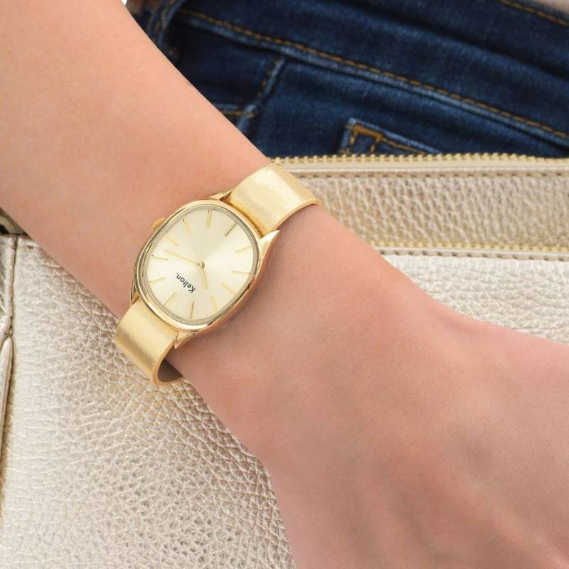 La montre 9123392 de la collection Colorama de Kelton ne manquera pas de vous surprendre de par son style épuré et glamour. Elle est dotée d'un boîtier rectangle en laiton et recouvert d'un PVD or jaune. De 28 millimètres de diamètre et 7 millimètres, il sublimera les poignets féminins. De plus, sur le côté droit du boîtier, se place une couronne remontoir pour effectuer le réglage des aiguilles du cadran. Quant à lui, il est protégé des éventuels chocs par un verre minéral. Enfin, avec un fond de boîte emboîté, l'étanchéité de cette montre est de 3 ATM, soit 30 mètres de profondeur.
