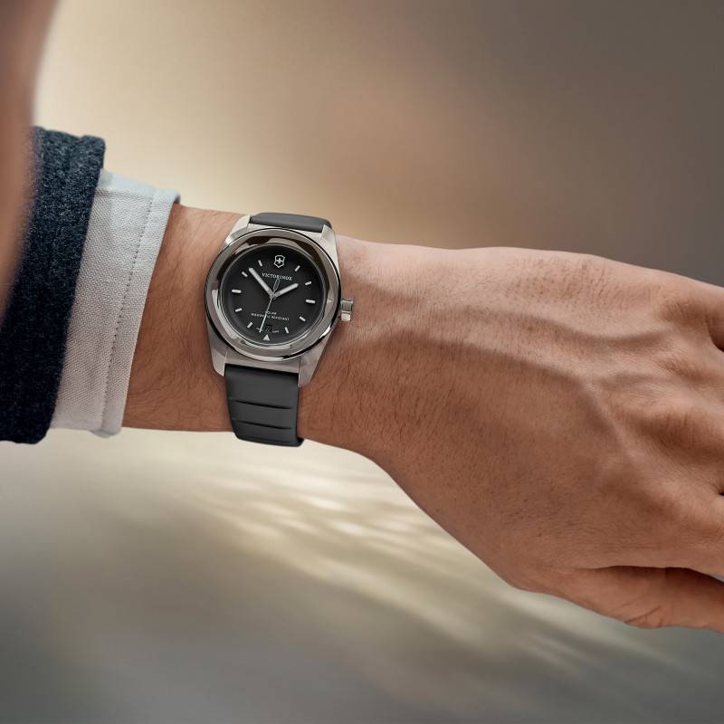 Le bracelet de la montre Victorinox Concept One Solar 39 témoigne du parfait équilibre entre confort et durabilité. Conçu en caoutchouc noir, il s'harmonise élégamment avec le design moderne de la montre tout en assurant un confort optimal pour le poignet. Le tout est complété par une boucle déployante pratique qui assure une fermeture sécurisée avec une grande facilité de manipulation, car il permet un ajustement rapide et sécurisé sans avoir besoin d'outils supplémentaires.