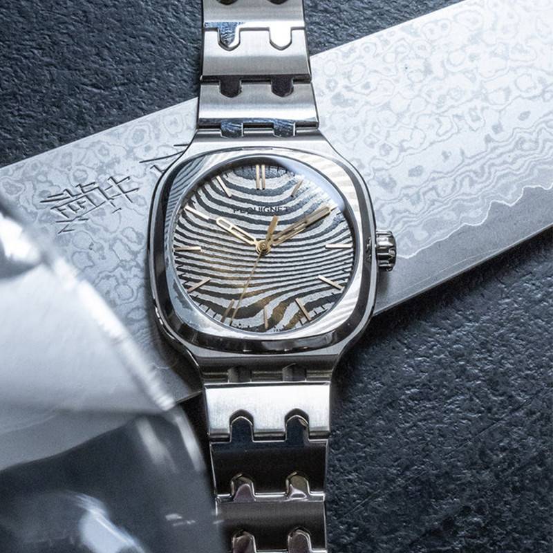 La montre Concorde Damas est le fruit d'une collaboration exceptionnelle entre la manufacture horlogère française Pequignet et le chef étoilé Matthias Marc. Cette co-création unique réunit deux univers d'excellence : la haute horlogerie et la haute gastronomie. Limitée à seulement 50 exemplaires, cette montre se distingue par son cadran et sa lunette en véritable acier de Damas, matériau emblématique des couteaux de chefs. Le chef Matthias Marc, ambassadeur de la manufacture et profondément attaché à la Franche-Comté comme Pequignet, s'est impliqué dans chaque étape de création pour donner vie à une montre qui célèbre le geste précis et l'excellence du savoir-faire. Cette pièce incarne la rencontre entre deux artisanats d'exception, où la rigueur horlogère répond à la précision culinaire. Elle est accompagnée d'un écrin en cuir inspiré des étuis de couteaux et d'un couteau de poche dont la lame est également en acier de Damas.