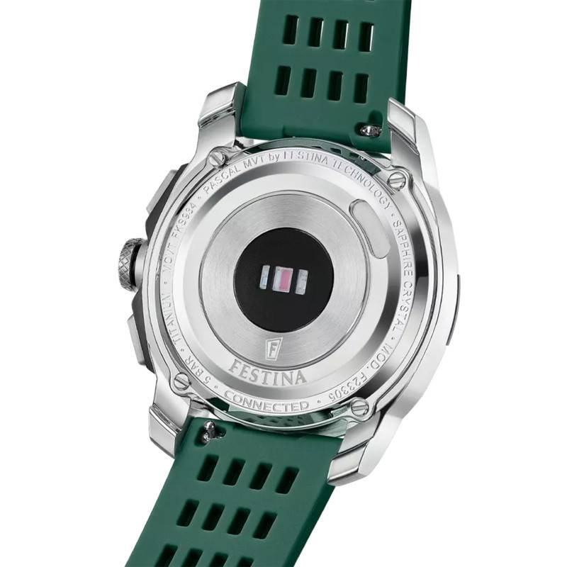 Au cœur de la Festina Connected Full D se trouve un moteur d'une précision exceptionnelle. Ce garde-temps embarque un mouvement hybride à quartz, développé par la Seiko Corp, garantissant fiabilité et précision. Ce mouvement japonais est réputé pour sa technicité avancée et offre une expérience horlogère fluide et éminemment fiable. Alliant la technologie du quartz à un remontage automatique, il représente le sommet de l'innovation horlogère.