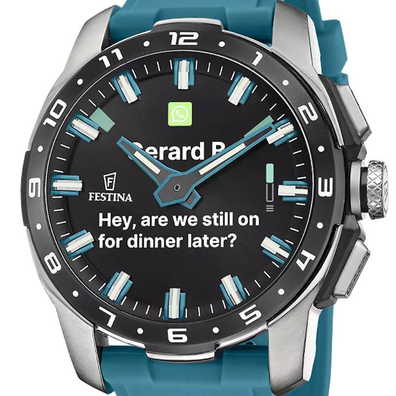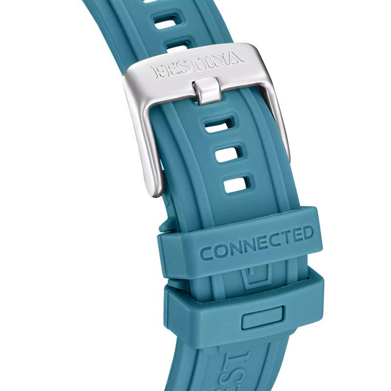 La montre connectée Full D de Festina se démarque par sa conception à la fois moderne et fonctionnelle. Le boîtier en titane de forme ronde assure une robustesse et une légèreté incomparables, faisant de ce modèle un choix parfaitement équilibré pour les amateurs de montres. Avec un diamètre de 44 mm et une épaisseur de 14 mm, cette montre s'accorde à une allure contemporaine et masculine tout en étant confortable à porter. Le poids du boîtier, 91 g, ajoute à la sensation de qualité et de durabilité du produit. Sa finition mate apporte une touche d'élégance discrète accentuée par l'éclat du métal.