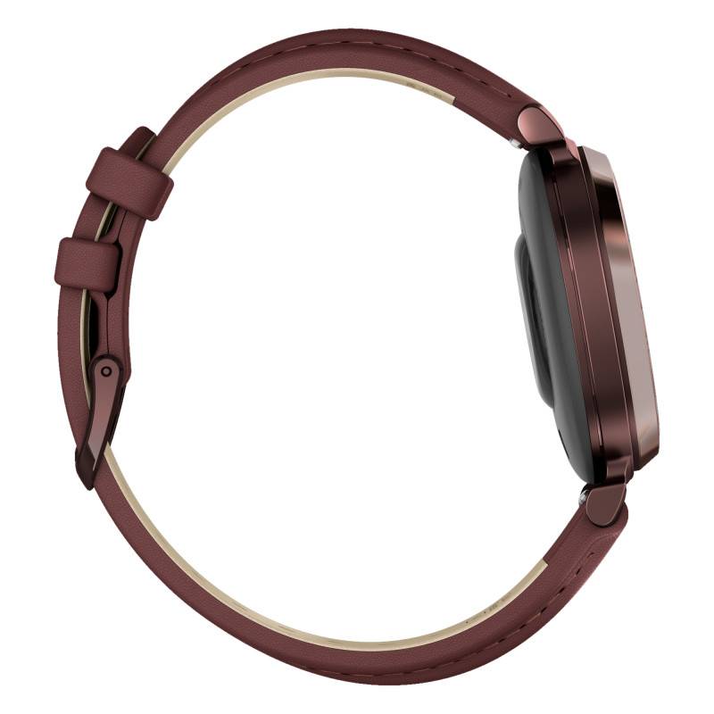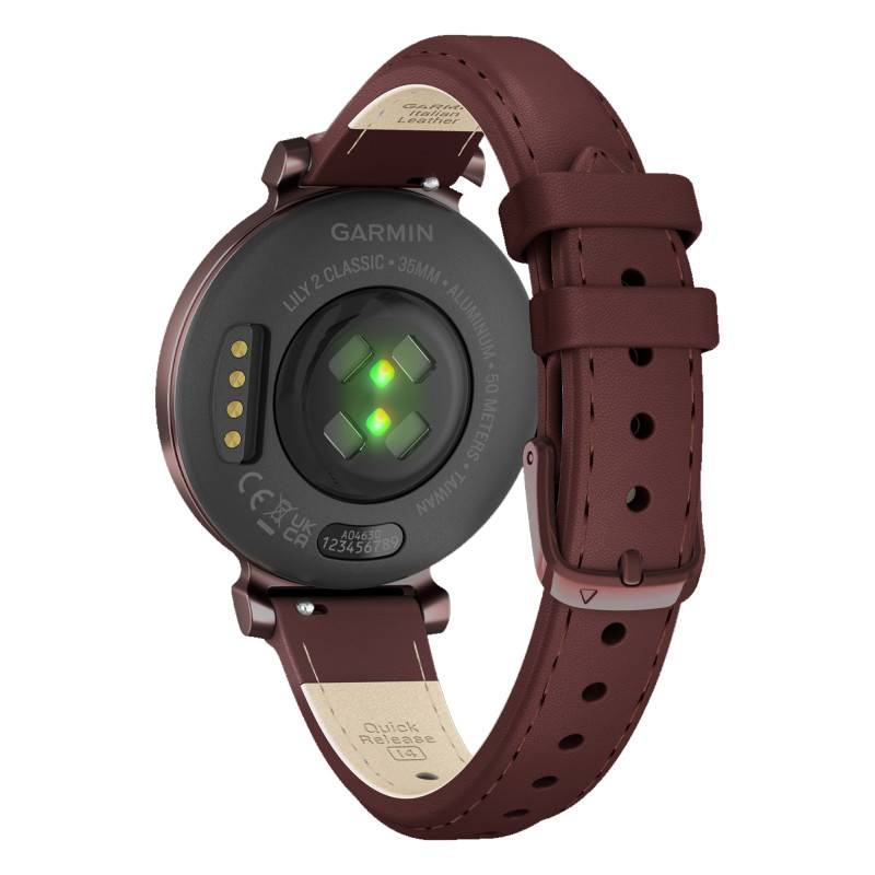 Garmin est une marque de renom américaine qui a su se faire une place de choix sur le marché horloger en proposant des modèles adaptés à la vie de tous les jours. Performant et disposant de multiples fonctionnalités, ce sont des modèles techniques de haute qualité et faisant preuve d'une grande précision. Afin de parer votre poignet féminin avec charme et élégance, elle vous propose aujourd'hui cette ravissante montre connectée Lily 2 Classic 010-02839-03 qui deviendra à coup sûr votre indispensable et s'adaptera à tous les looks. De couleur Dark Bronze, elle arbore un boîtier réalisé en aluminium annodisé mesurant 35,50 mm de diamètre et 10,10 mm d'épaisseur qui vous assurera du confort tout au long de son port. Sa surface est recouverte par un verre Corning® Gorilla® Glass 3 présentant des motifs et ayant pour rôle de protéger le cadran des chocs et des rayures pouvant nuire à son esthétique. Disposant d'une lunette également en aluminium annodisé de finition polie et dépourvu de bouton-poussoir, cette carrure présente un fond emboîté muni de capteurs biométriques qui lui assure une étanchéité de 5 ATM. Quant au poids de la montre, il est de 21,50 gr.