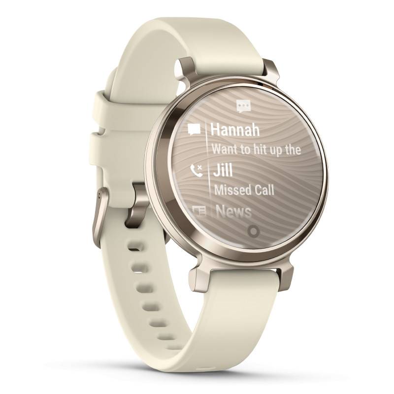 Garmin est une marque horlogère créée en 1989 qui s'illustre merveilleusement bien à travers ses montres haut de gamme. Ses créations sont réputées pour leurs performances et leurs fonctionnalités avancées. C'est des montres outils à utiliser quelle que soit votre activité ou votre style de vie. En témoigne cette magnifique montre Connectée Lily 2 010-02839-00 qui satisfera vos attentes esthétiques et techniques. Elle combine design épuré aux meilleures innovations pour vous accompagner au quotidien. Son boîtier de forme ronde est réalisé en aluminium anodisé de couleur gold crème et mesure 35,50 mm de diamètre pour une épaisseur de 10,10 mm. Ce sont des dimensions qui le destinent à sublimer les poignets féminins. La lunette en aluminium anodisé entoure un verre à motifs unique de type corning gorilla qui signe son originalité. Enfin, ce modèle, dépourvu de boutons, pèse 24,40 gr et est doté d'un fond emboîté affichant des capteurs biométriques qui garanti une étanchéité de 5 ATM.