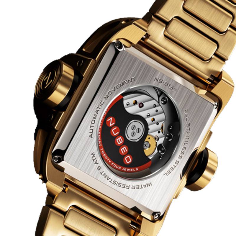 Au cœur de ce garde-temps, le mouvement automatique signé Miyota montre toute la dévotion que la marque Nubeo met dans la précision. Abrité par une disposition architecturale innovante, ce mécanisme japonais se caractérise par sa fiabilité et sa performance. Doté d'une masse oscillante, il utilise l'énergie cinétique produite par les mouvements du poignet pour fonctionner sans besoin de pile, transformant ainsi les mouvements quotidiens en énergie perpétuelle.