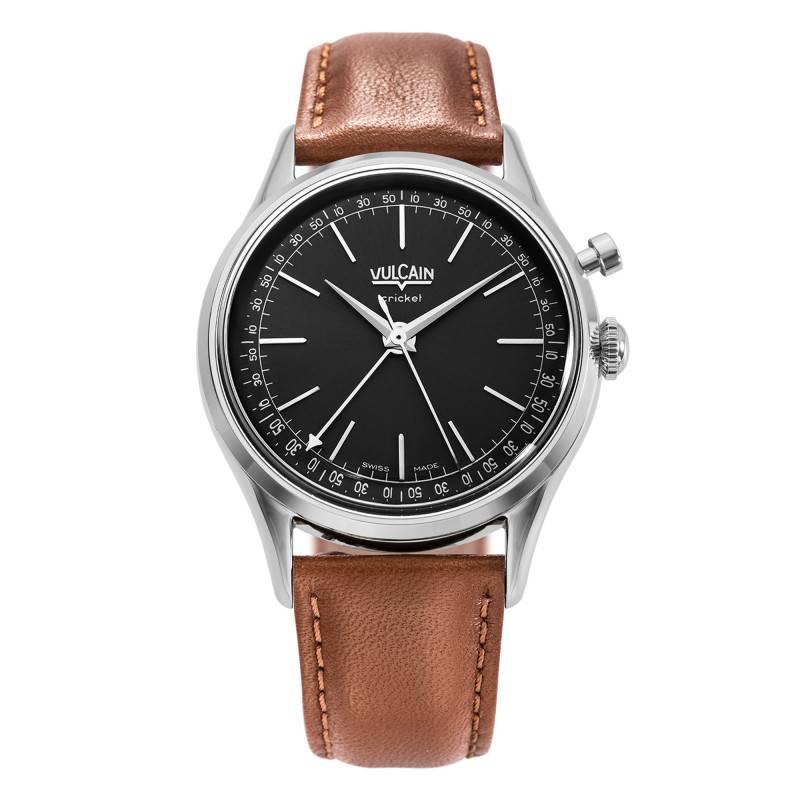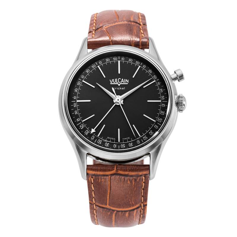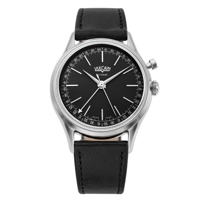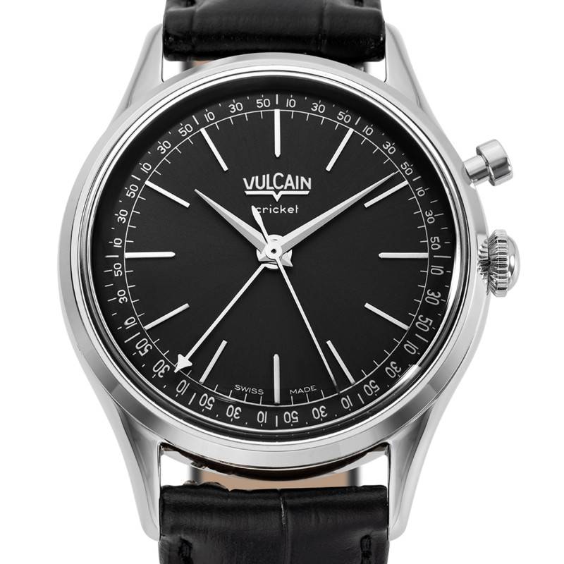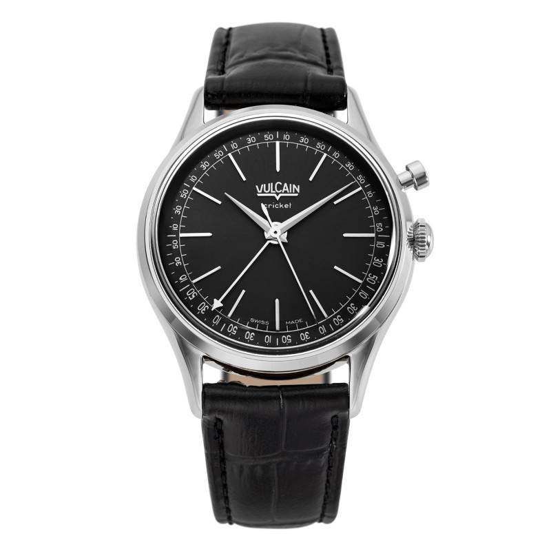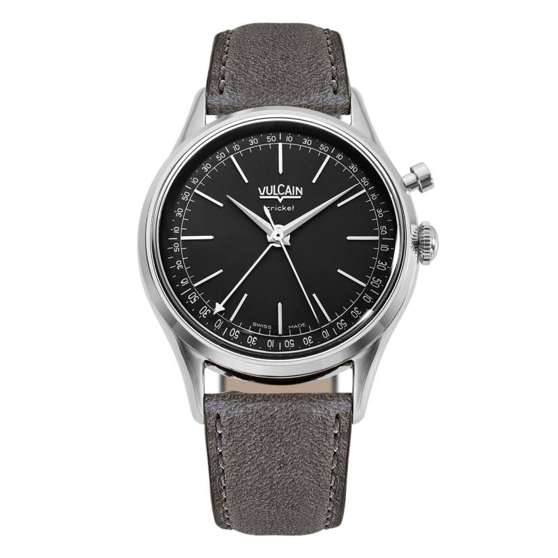 Cette belle édition limitée est agencée avec un cadran rond au charme saisissant qui lui confère une touche de modernité plus profonde. Celui-ci se pare d'une couleur noire intense pour un effet plus profond qui contraste à la perfection avec ses indicateurs argentés. Son fond semi-mat est survolé par quatre aiguilles à l'allure élancée qui accordent à l'ensemble un aspect exquis tout en vous assurant une visibilité claire et nette de l'heure. En premier lieu, deux aiguilles dauphines s'animeront avec fluidité pour vous communiquer les heures et les minutes. Ces dernières sont accompagnées par une fine trotteuse grise qui complétera votre lecture temporelle en désignant, quant à elle, les secondes. La quatrième aiguille embellie par un bout fléché servira quant à elle à la fonction de réveil. Elle pointera un traceur d'alarme gradué par des chiffres arabes et des traits blancs sur une échelle de 12 heures. Celui-ci entoure un cercle blanc marqué par un chemin de fer des minutes. Ce dernier est séparé de 5 en 5 par des index bâtons disposés en applique qui marquent les heures, vous permettant d'effectuer une lecture temporelle plus rapide. Par ailleurs, vous remarquerez le label “Swiss Made” apposé vers 6h qui vous rappellera l'origine de cette pièce horlogère. Finalement, Vulcain marque son nom avec le nom "Cricket" sous 12h en guise de signature.