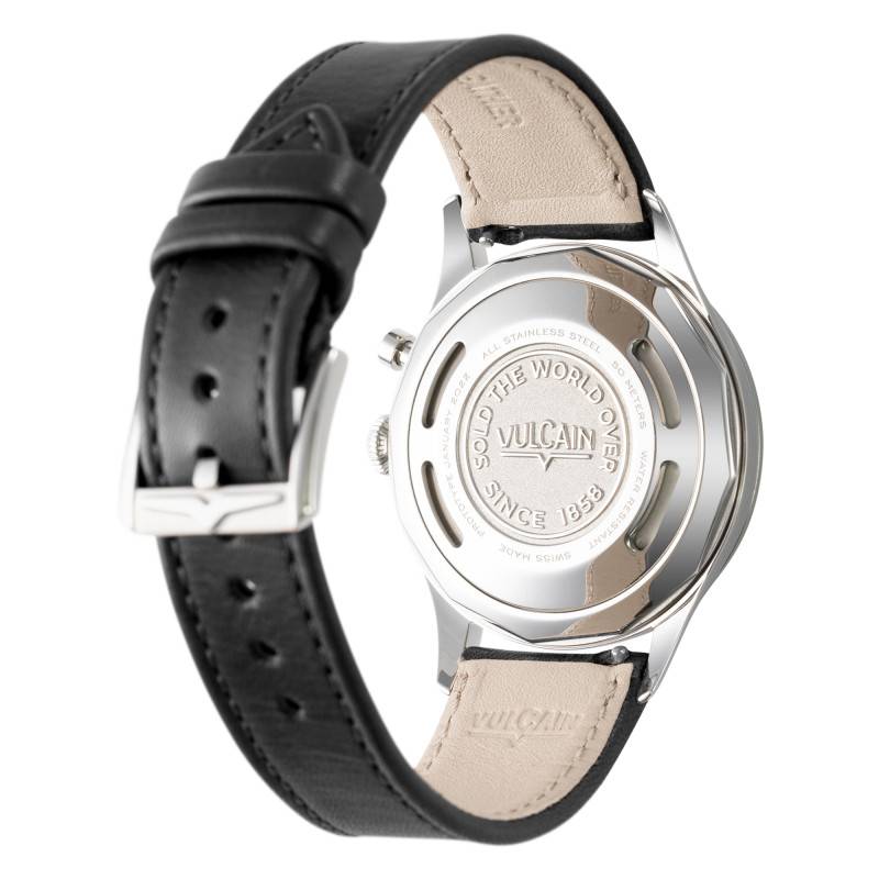 Le boîtier de ce garde-temps renfermera un mouvement 12 lignes mécanique de fabrication suisse qui est réputé pour sa haute qualité, sa grande efficacité et sa performance infaillible. Doté de 25 pierres et du système breveté Exactomatic avec 165 composants, c'est plus précisément le calibre Vulcain Cricket manufacture V-10 qui donnera vie à cette montre en assurant la bonne marche de ses aiguilles. Il dispose de deux barillets, dont un est destiné pour le mouvement et l'autre pour la complication réveil, garantissant une précision indéniable. Ce mécanisme oscille à une fréquence de 18.000 alternances/heure et offre une réserve de marche de 52 heures. Votre lecture temporelle se fera donc de manière fiable et exacte, et ce, en toutes circonstances.