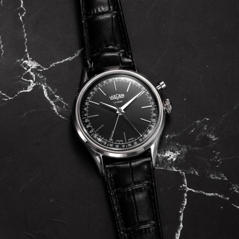 Reconnue dans le monde entier en tant que “Marque des Présidents”, l'incontournable manufacture locloise Vulcain continue à faire parler d'elle grâce à son esprit innovant et à son savoir-faire éminent qu'elle ne cesse de perpétuer à travers des créations horlogères iconiques réputées pour leur haute qualité, leur mécanisme élaboré et leur esthétique raffinée. Chacune de ces montres arbore un design polyvalent et des complications inédites qui lui permettent de se prêter à tous les styles vestimentaires et d'être ainsi porté par tous les amateurs d'horlogerie. Aujourd'hui, la marque dévoile une nouvelle ligne de sa gamme légendaire Cricket avec cinq montres en édition limitée qui vous offrira le style des années 70 en vous assurant un mélangé épuré de performance, de technicité, d'élégance et d'authenticité. Ocarat a le plaisir de vous présenter ce merveilleux garde-temps Cricket President en version black, un modèle sophistiqué qui saura conquérir le cœur des collectionneurs avertis, des passionnés de belles horlogeries et des personnes en quête de nouveauté. Illustrant la passion et l'ingéniosité de Vulcain tout en rendant hommage à l'âge d'or de l'horlogerie classique, ce dernier sera votre nouveau bijou horloger préféré qui vous permettra de sortir du lot tout en affirmant avec prestance votre style si distingué. Il habillera toutes vos tenues avec une touche rétro moderne exquise en vous offrant une expérience exceptionnelle au poignet. Proposé en édition limitée à 50 exemplaires numérotés, il s'équipe d'un boîtier rond en acier inoxydable 316L avec une finition polie qui accorde à la montre un air casual bien étudié sans compromettre son allure classique. Celui-ci mesure 36 mm de diamètre, un choix résolument pensé pour habiller parfaitement les poignets de la gent aussi bien masculine que féminine tout en assurant un confort absolu. Il est rehaussé par un verre saphir traité anti-reflet donnant lui un aspect plus vintage grâce à sa forme bombée. Assurant une lisibilité impeccable sous tous les angles, ce dernier viendra encaisser les chocs issus de l'usage quotidien qui peuvent endommager le cadra. Il est entouré par une lunette grise dotée d'une finition satinée circulaire qui confère à l'ensemble une note de modernité dynamique. Par ailleurs, une couronne crantée prend place à 3h servant au réglage manuel des heures et des minutes. Le bouton poussoir qui l'accompagne à 2h vous permettra de manipuler le réveil. Cette complication proposée émet une sonnerie distincte pendant 20 secondes. Sachez que cette montre vous sera livrée selon votre choix avec un fond de boîte vissé soit plein ou doté d'une ouverture transparente en verre saphir. Ce dernier assurera à la montre une étanchéité de 50 mètres.