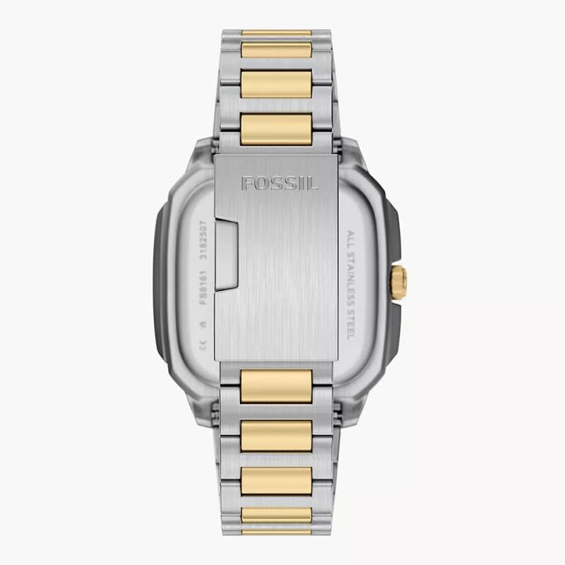Le bracelet de cette montre Fossil offre une combinaison spectaculaire de matériaux et de couleurs : acier inoxydable et PVD Gold, mariant ainsi élégance et robustesse pour un usage quotidien. Avec une entrecorne de 22 mm, le bracelet assure un maintien parfait sur le poignet, complété par une boucle déployante qui garantit une sécurité accrue et une simplicité d'utilisation. Les teintes gris et jaune alternent sur ce bracelet, renforçant le style affirmé et moderne de la montre, idéal pour un homme qui apprécie un design soigné et raffiné.
