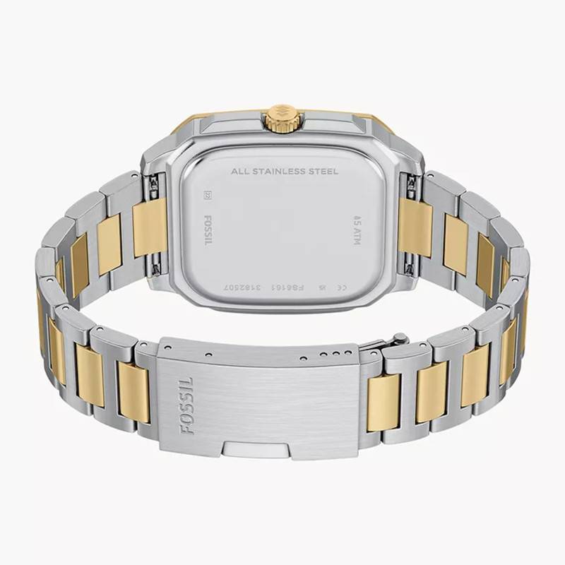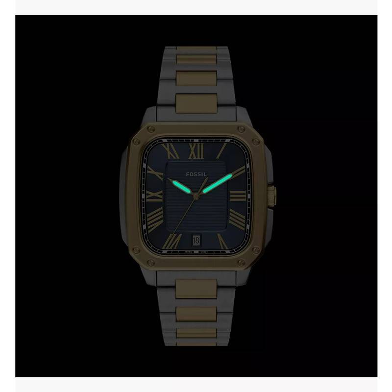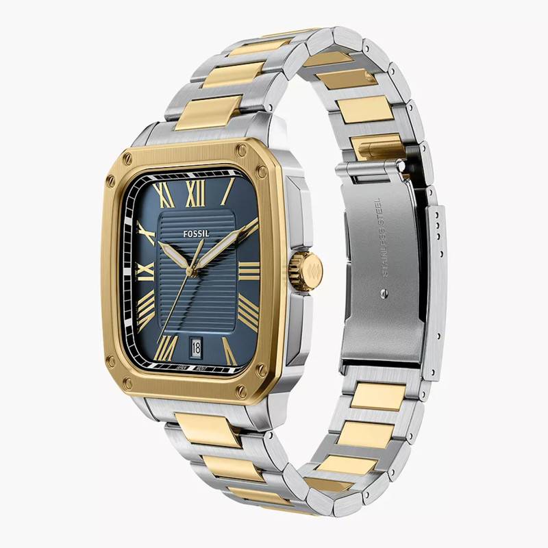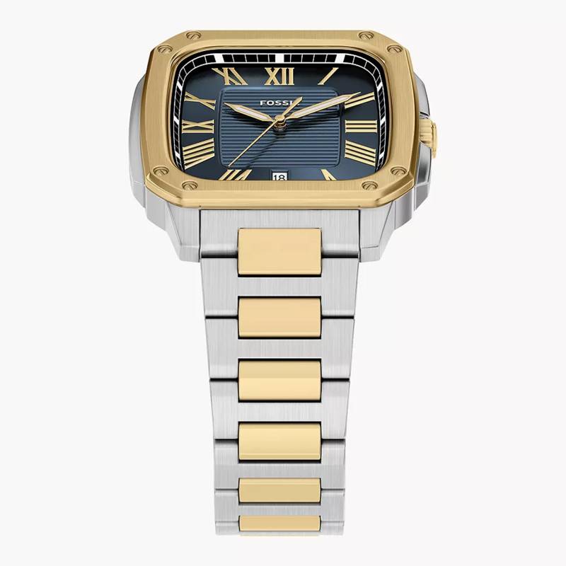 La montre Crosby de la marque Fossil se distingue par son allure carrée et moderne, conçue pour l'homme élégant du quotidien. Fabriquée en acier inoxydable, elle combine une alliance de gris et de jaune, qui apporte une touche de sophistication subtile et raffinée. Son boîtier présente un diamètre généreux de 42 mm, parfait pour ceux qui recherchent une présence affirmée au poignet. C'est une montre robuste et captivante au premier regard, grâce à ses finitions brossées et son revêtement PVD jaune. Chaque détail est minutieusement pensé, de la résistance du fond emboîté à la qualité du verre minéral plat, assurant durabilité contre les rayures potentielles. Le système d'étanchéité de cette montre atteint les 5 ATM, ce qui est parfaitement adapté pour un usage quotidien sans compromettre le style ou la fonctionnalité.