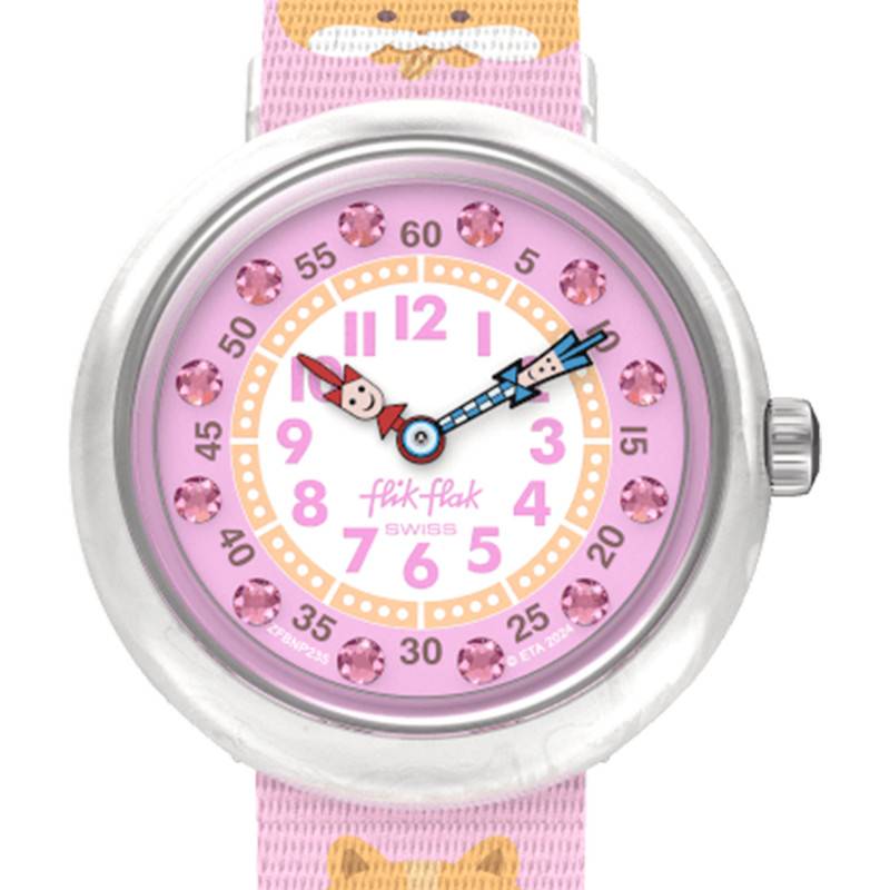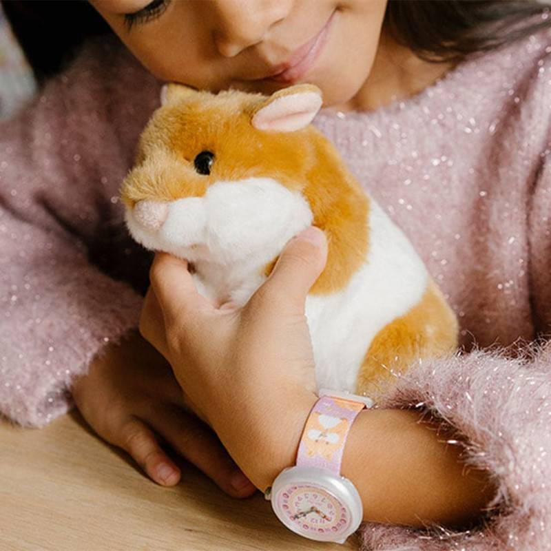 Cette montre Flik Flak, modèle Cuddly Hamster, est un véritable bijou de l'horlogerie suisse conçu spécialement pour les enfants. Elle combine à la fois esthétique et fonctionnalité, avec une conception robuste et des matériaux durables. Le boîtier, d'une forme ronde au diamètre de 31,85 mm et d'une épaisseur de 9,25 mm, est fabriqué à partir de matériaux biosourcés et plastiques, alliant respect de l'environnement et solidité. Sa couleur grise s'harmonise avec le bracelet aux teintes roses et oranges. La montre rend hommage aux animaux adorés des enfants avec des motifs de hamster affichés sur le bracelet. Le choix des matériaux garantit légèreté et confort, indispensables pour les enfants. Le verre plat et le fond de boîtier monobloc assurent, notons l'étanchéité jusqu'à 3 ATM, rendant ce garde-temps pratique et prêt à affronter diverses aventures, même sous la pluie. Véritable accessoire de mode, cette montre est aussi un outil éducatif, apprenant aux enfants à lire l'heure de manière ludique et attrayante.