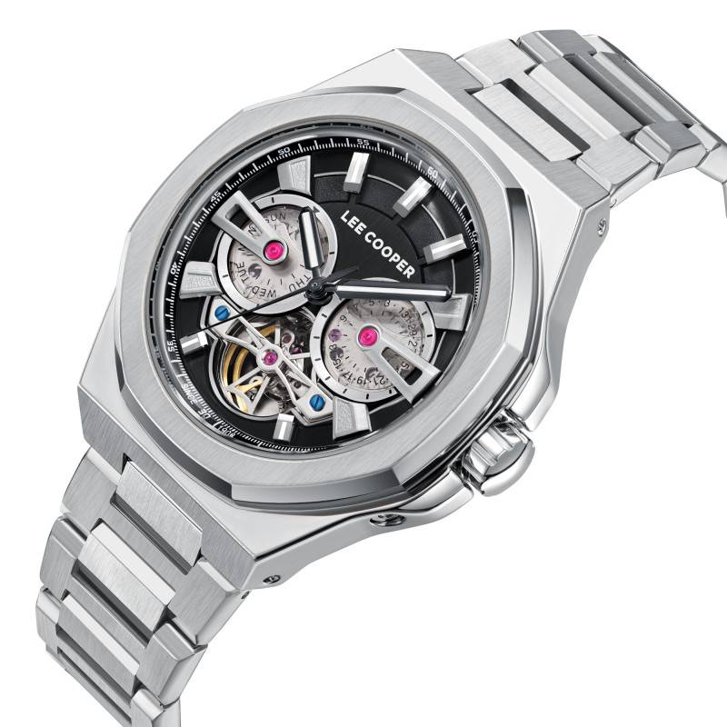 Lee Cooper propose ici une montre pour homme d'une dimension de 43 mm, révélant une combinaison subtile de modernité et de classicisme avec son boîtier rond et sa lunette octogonale. Confectionnée en acier, elle arbore une finition alternant entre mate (brossée/satinée) et polie/brillante. Le boîtier procure une allure à la fois sportive et élégante, parfaite pour toutes les occasions. Grâce à un fond vissé, cette montre garantit une solide étanchéité allant jusqu'à 5 ATM. Cette conception assure non seulement une résistance à la pression de l'eau mais également une durabilité accrue, protégeant efficacement le mouvement interne de l'humidité et des fluctuations atmosphériques.