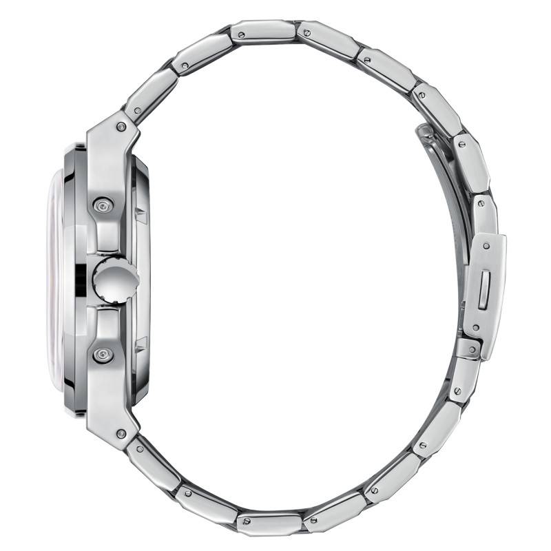 L'élégance continue jusqu'au bracelet, où l'acier de haute qualité est présenté avec une finition élégante brossée. Conçu pour être à la fois robuste et esthétiquement plaisant, le bracelet accentue l'allure audacieuse de la montre tout en garantissant un confort optimal au poignet. Mesurant 24 mm à l'entrecorne, il s'ajuste facilement grâce à une boucle déployante qui assure à la fois sécurité et facilité d'utilisation. I