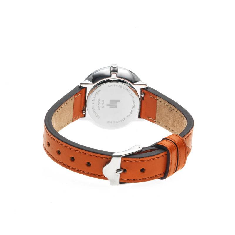 A travers sa collection Dauphine, Lip propose des montres intemporelles pour les deux genres afin que chacun y trouve son bonheur. En effet, elle dispose d'un large portefeuille de modèles pour vous satisfaire au mieux. Ici, le modèle Dauphine 671476 possède un boîtier en acier inoxydable qui gardera sa couleur d'origine. Avec ses 29 mm de diamètre, il se destinera à la gent féminine. Sa couronne remontoir à trois heures vous permettra d'effectuer le réglage de vos aiguilles. De plus, il s'arme d'un verre minéral bombé pour, d'une part, protéger le cadran des divers risques de rayures, et d'autre part, optimiser la lisibilité de celui-ci. Avec un fond de boîte emboîté, l'étanchéité de ce garde-temps est garantie à hauteur de 50 mètres.