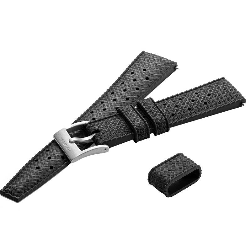 Chacun des bracelets peut être sélectionné via le menu déroulant, permettant une personnalisation selon vos préférences. Les bracelets caoutchouc sont dotés d'une boucle ardillon tandis que les bracelets en acier présentent une boucle déployante.