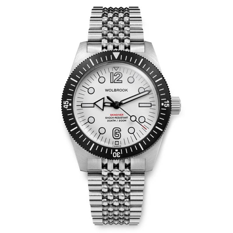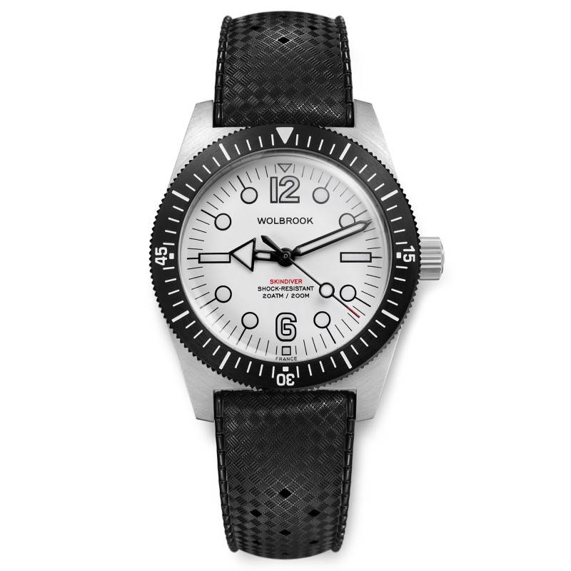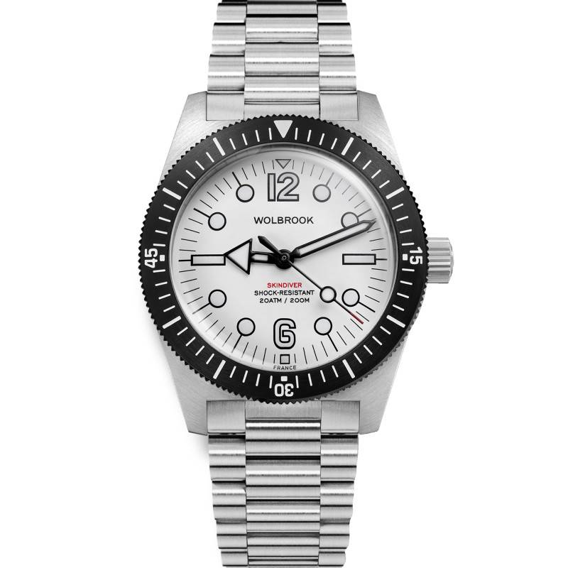La montre Wolbrook Skindiver Automatic 38 mm Jumbo - Arctic est une véritable prouesse de design et de technologie, spécifiquement conçue pour accompagner les amateurs de plongée et d'aventure dans leurs explorations. Fabriquée en France et bénéficiant d'une garantie internationale de 3 ans, cette montre est synonyme de qualité et de fiabilité. Le boîtier est entièrement réalisé en acier inoxydable 316L, reconnu pour sa résistance exceptionnelle à la corrosion, assurant ainsi une longévité remarquable. Sa forme tonneau lui confère une élégance intemporelle tout en étant robuste, avec des dimensions soigneusement pensées de 38 mm de diamètre et 12 mm d'épaisseur. La lunette uni-directionnelle est un atout majeur pour les plongeurs, munie de marqueurs luminescents pour faciliter la lecture du temps en toute situation.