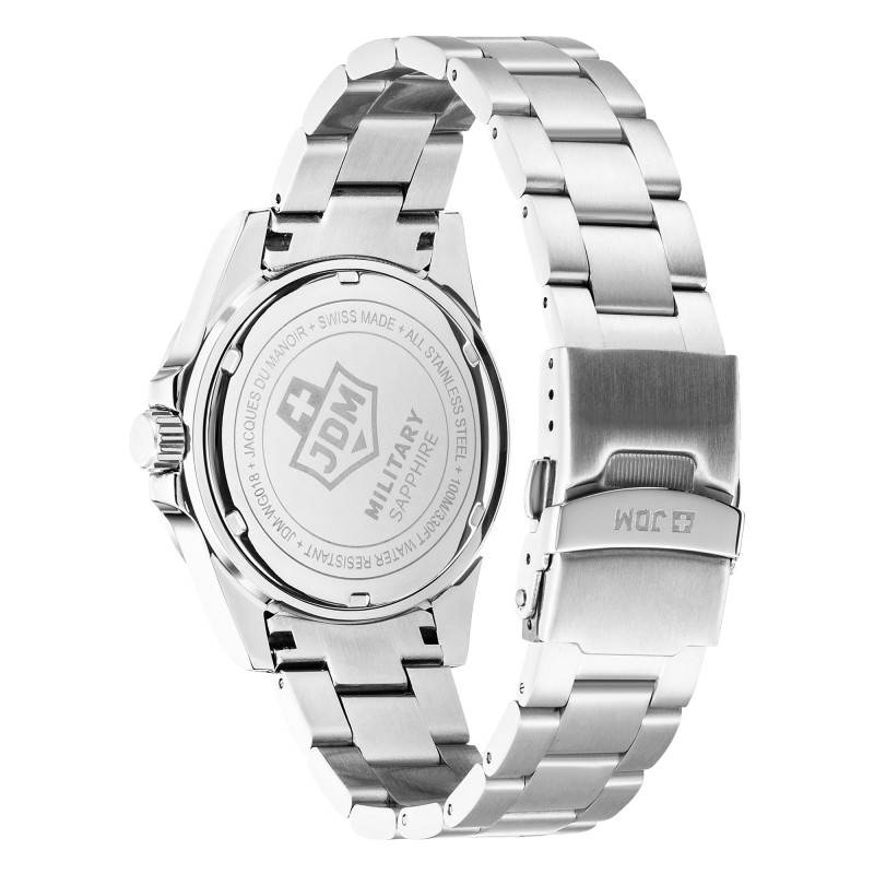 Les charmantes créations horlogères JDM Military débarquent chez Ocarat pour faire votre plus grand plaisir. Vous trouverez une large sélection des modèles de cette emblématique marque suisse déclinés dans des styles classiques, contemporains et sportifs avec des designs dans l'air du temps, une qualité soignée et une performance technique. De sa nouvelle collection Delta 24, Ocarat a le plaisir de vous présenter cette belle montre JDM-WG018-01, un modèle raffiné, moderne et performant qui vous accompagnera partout en vous conférant une allure captivante. 100% Swiss Made, celle-ci arbore une esthétique à la fois chic et sportive pour s'accorder avec tous les styles vestimentaires. Pratique pour un port quotidien, elle vous permettra de ressortir avec prestance votre singularité en vous assurant un confort ultime et une grande durabilité. Son boîtier rond est conçu en acier inoxydable et se pare d'une finition polie qui lui accorde une brillance subtile. Mesurant 45 mm de diamètre, il conviendra à la perfection aux poignets de la gent masculine. Sa lunette grise porte des graduations en chiffres arabes et triangulaires, servant pour la lecture de l'heure d'un second fuseau horaire. Cette dernière entoure un verre saphir qui viendra protéger le cadran contre les éventuels chocs et éraflures du quotidien. Par ailleurs, une couronne crantée prend place à 3h, vous aidant à régler les heures, les minutes et la date. Finalement, ce garde-temps dispose d'un fond de boîte vissé qui lui permet une étanchéité de 100 mètres.