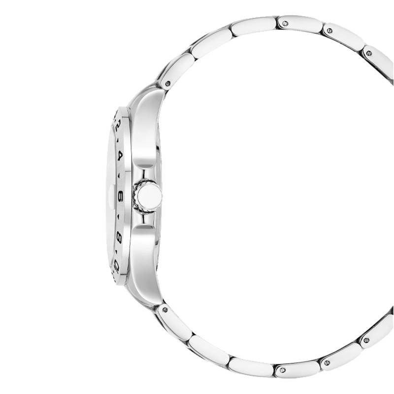 Le bracelet agencé avec cette montre est réalisé en acier inoxydable avec une finition polie/brossée qui lui confère un air plus délicat. Facile à assortir et agréable à porter, il soulignera votre poignet avec délicatesse en s'avérant confortable, robuste et durable en toute circonstance. Il se compose de trois rangées de maillons et se veut être l'addition intemporelle et sport chic qui rehaussera le charme de votre look. Sa boucle déployante est pourvue de boutons poussoirs, assurant un maniement aisé et un port sécurisé tout au long de la journée.